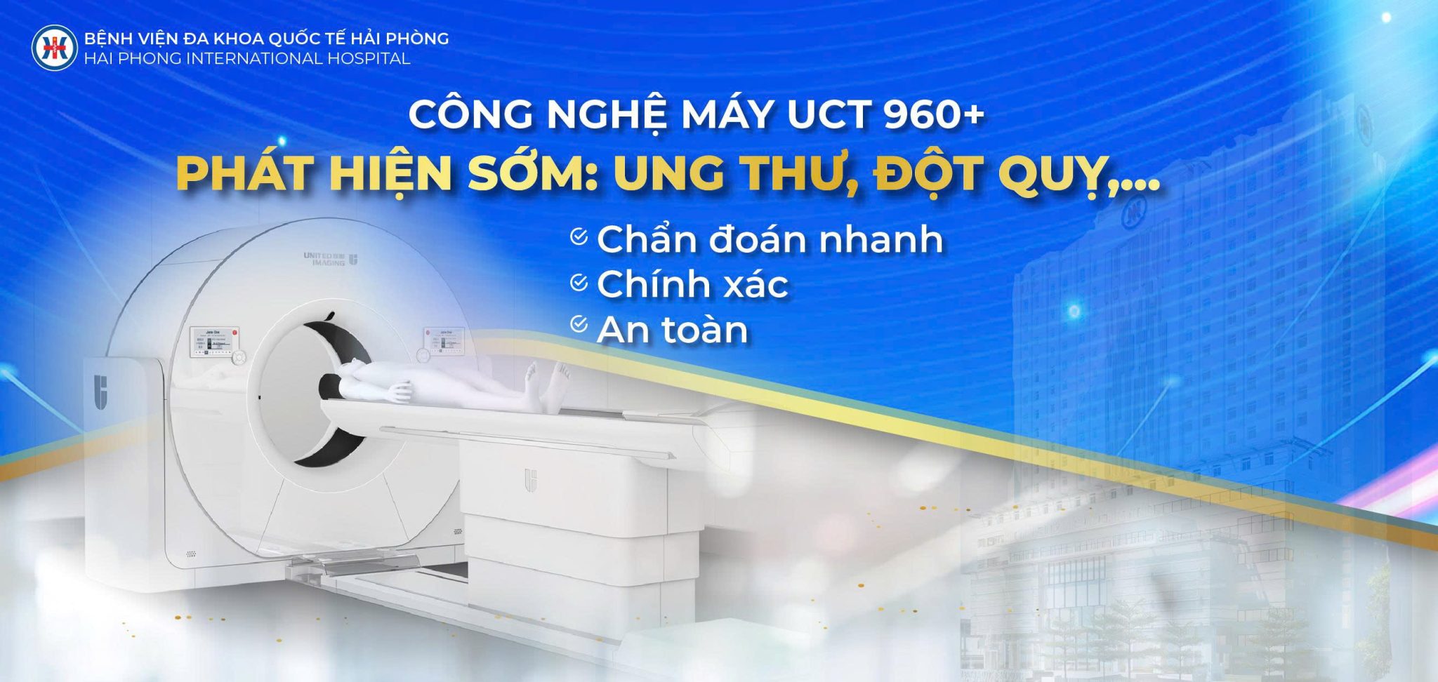 Hệ thống máy chụp UCT 960 của United Imaging Healthcare với công nghệ AI hàng đầu, mở ra kỷ nguyên hình ảnh thông minh, mang lại sự chính xác và an toàn tại Bệnh viện đa khoa Quốc tế Hải Phòng. Tích hợp nhiều công nghệ đỉnh cao, vượt trội: Công nghệ mới nhất, lần