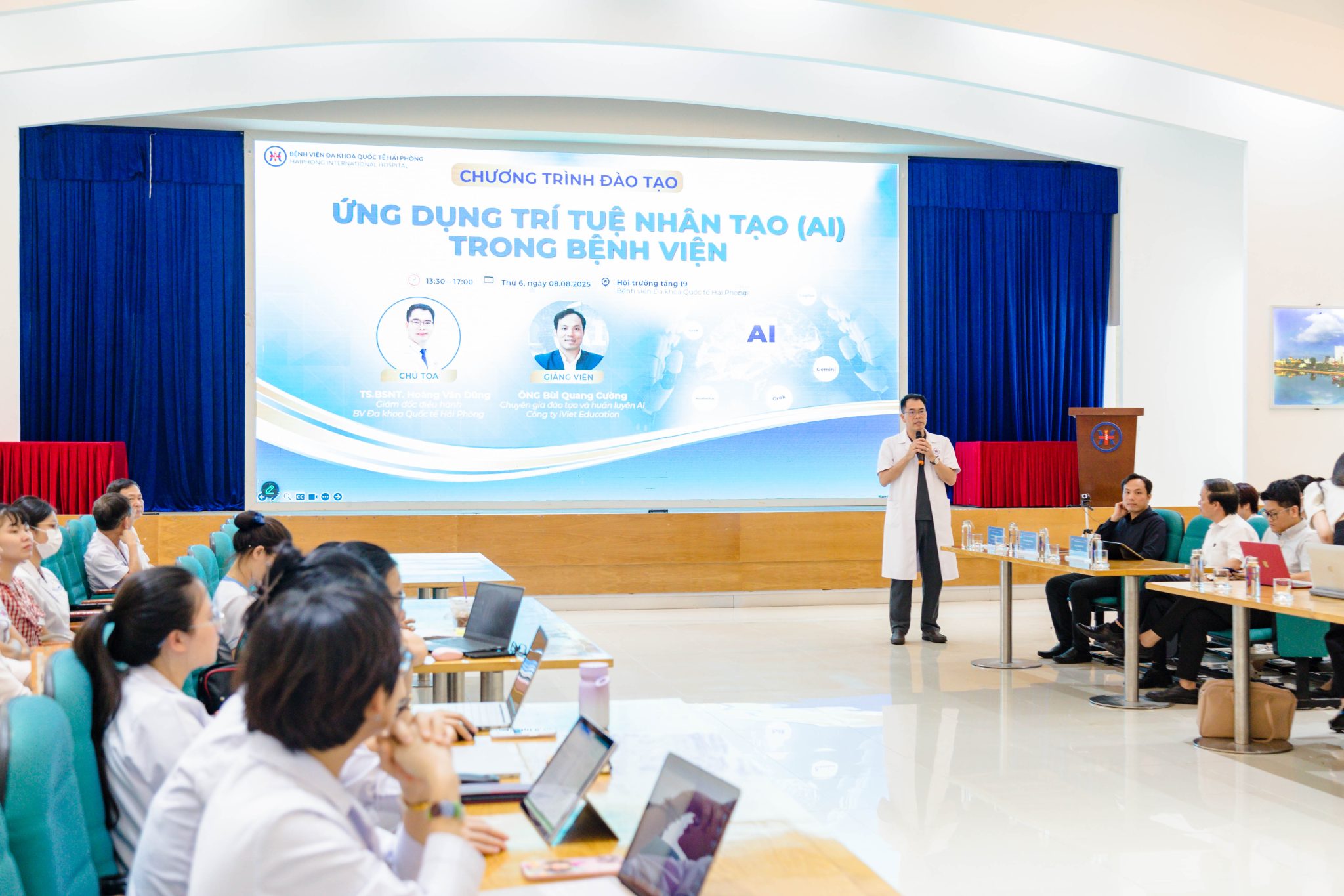 Hội thảo “Ứng dụng Trí tuệ nhân tạo (AI) trong Bệnh viện” có ý nghĩa quan trọng, đặc biệt trong giai đoạn đất nước cùng Ngành Y đẩy mạnh chuyển đổi số để bước vào kỷ nguyên mới. Chương trình đã cập nhật, chia sẻ nhiều kiến thức, ứng dụng mới về trí tuệ nhân tạo, từng bước đưa AI trở thành công cụ hỗ trợ đắc lực chuyên môn, hướng tới mục tiêu nâng cao chất lượng khám chữa bệnh, tối ưu trải nghiệm người bệnh và Bệnh viện đa khoa Quốc tế Hải Phòng giữ vững vị thế tiên phong trong đổi mới y tế.