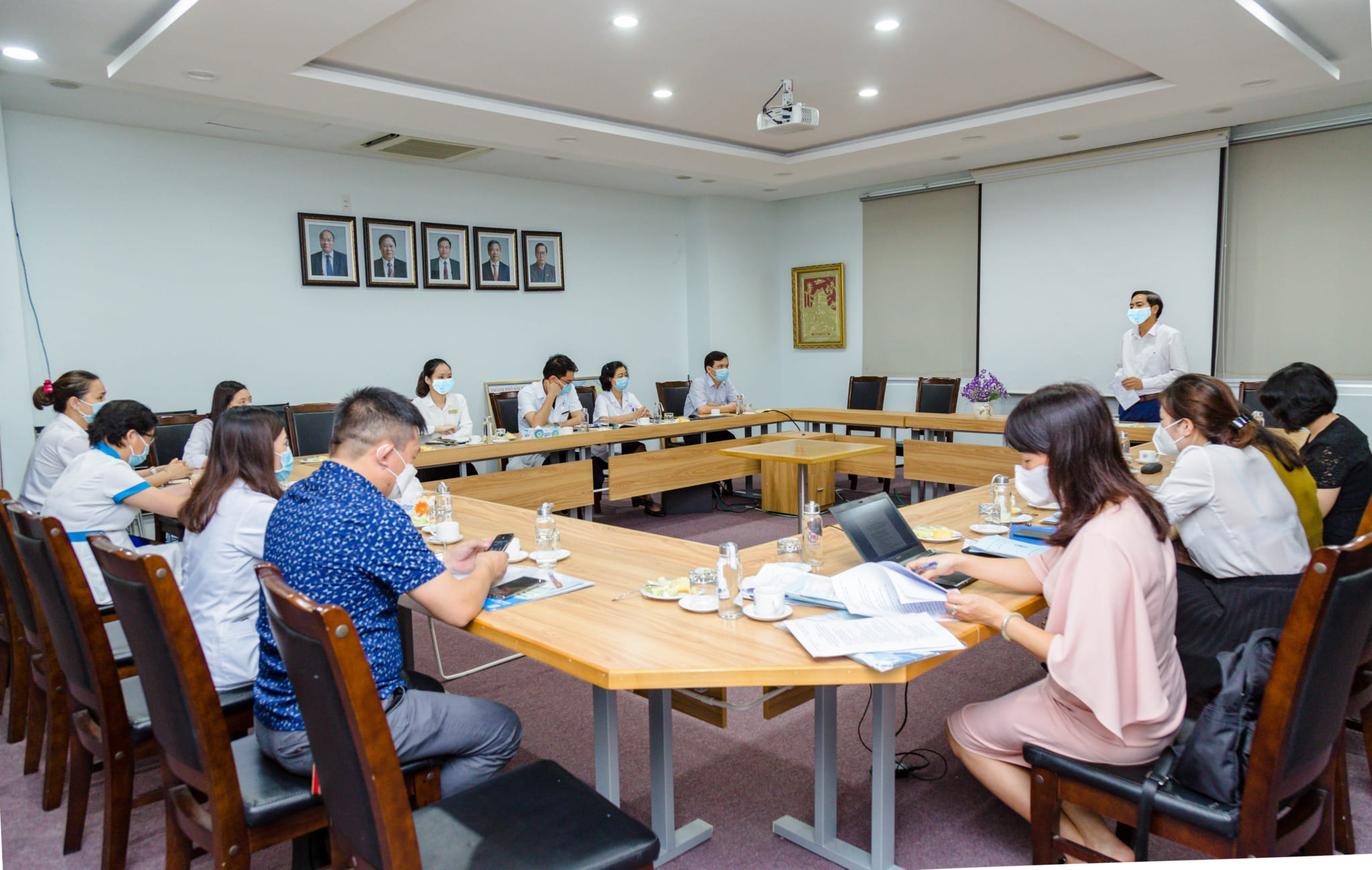 Song song với đó, bệnh viện đã tổ chức xét nghiệm SARS-COV2 cho tất cả các nhân viên y tế và 100% nhân viên đã có kết quả âm tính. Định kỳ một tuần một lần thực hiện xét nghiệm cho 30% nhân sự tuyến đầu, có nguy cơ phơi nhiễm cao như: phòng khám bệnh, khoa hồi sức cấp cứu – thận nhân tạo, tiếp đón, phân luồng… Ngoài ra, thực hiện theo dõi sát sức khỏe định kỳ nhân viên toàn bệnh viện.