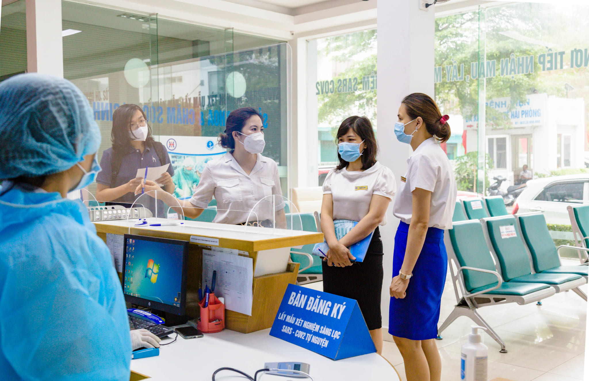Ngay từ cổng, Bệnh viện đã tổ chức phân luồng bệnh nhân và tất cả các bệnh nhân đến đều được sàng lọc và khai báo y tế. Với các đối tượng ho, sốt, khó thở… hay có yếu tố dịch tễ đều được phân luồng sang khu khám sàng lọc với vị trí tòa nhà tách biệt hoàn toàn với tòa nhà chính. Thắt chặt an ninh, an toàn lối vào và lối ra bệnh viện với đầy đủ các bước: đo thân nhiệt, sát khuẩn tay, đeo khẩu trang…