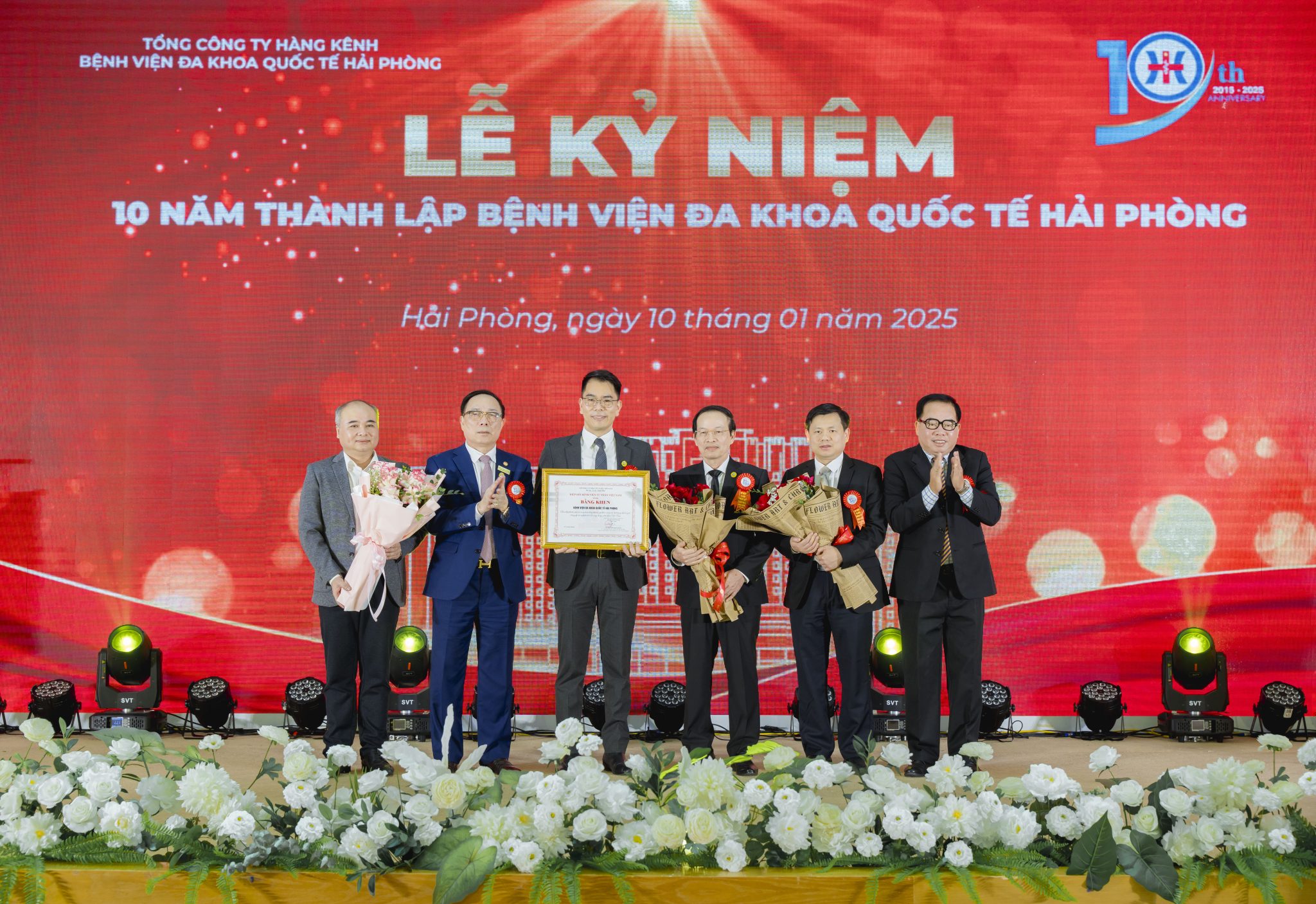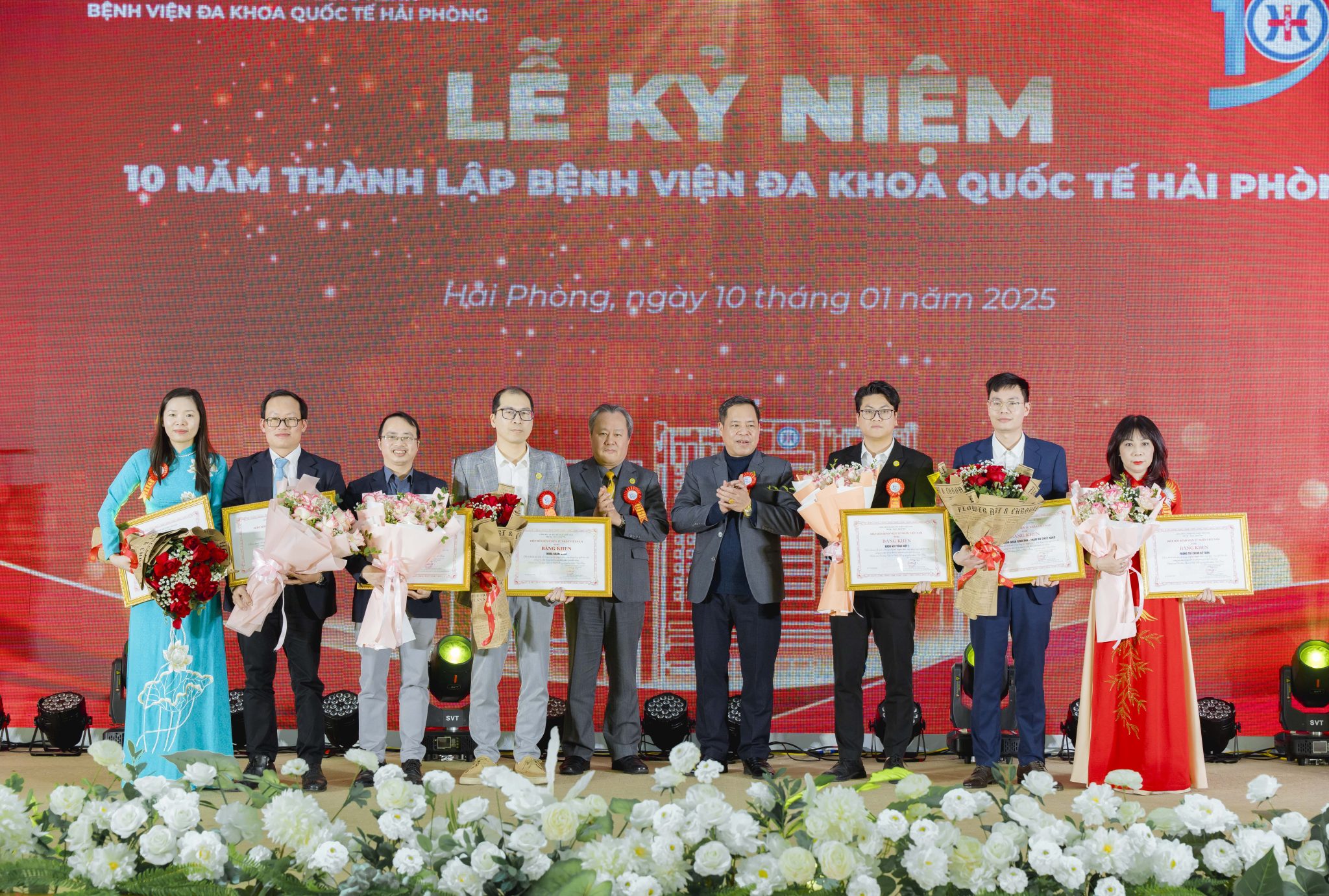 Nhân dịp này, Bệnh viện đa khoa Quốc tế Hải Phòng đã vinh dự được UBNDTP trao tặng Bức trướng: “Đổi mới – tận tâm-Nâng tầm- Phát triển”; Hiệp Hội bệnh viện tư nhân Việt Nam trao tặng Bệnh viện Bằng khen Tập thể Bệnh viện xuất sắc, trao tặng Kỷ niệm chương cho 2 cá nhân, Bằng khen cho 7 tập thể và 10 cá nhân có thành tích xuất sắc. Sở Y tế tặng Giấy khen cho 10 tập thể và 30 cá nhân có thành tích đóng góp trong xây dựng và phát triển Bệnh viện Đa khoa quốc tế Hải Phòng.