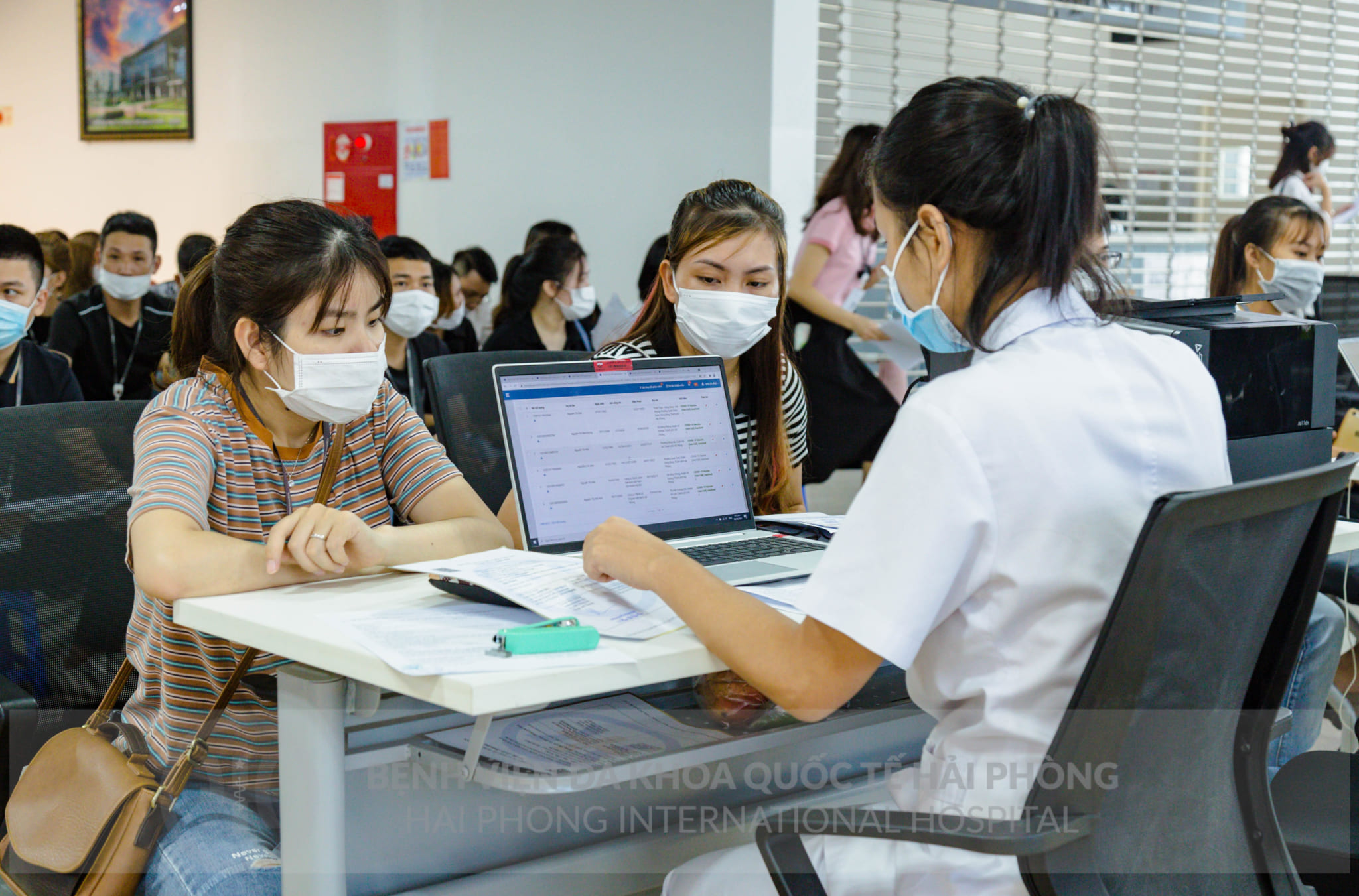 Ngay khi nhận được kế hoạch chỉ đạo, phân công của thành phố và Sở Y tế, Bệnh viện đã có sự chuẩn bị kỹ lưỡng về mọi mặt, tập trung cao độ, phối hợp chặt chẽ với Ban Quản lý Khu kinh tế, các doanh nghiệp thuộc Khu công nghiệp Tràng Duệ. Bố trí hai điểm tiêm với nguyên tắc một chiều từ đón tiếp, hướng dẫn, tư vấn, khám sàng lọc, thực hiện tiêm chủng, theo dõi và xử trí phản ứng sau tiêm. Nhân sự bệnh viện được huy động, tăng cường tối đa, lên đến trung bình 100 nhân sự tham gia/ngày. Điểm tiêm được phân công nhiệm vụ cụ thể cho từng nhân viên tương ứng với mỗi bộ phận như: Tiếp đón, hướng dẫn; Khám sàng lọc; tiêm chủng bố trí 14-15 bàn tiêm/điểm tiêm/ngày; ký giấy chứng nhận; theo dõi và xử trí sau tiêm.