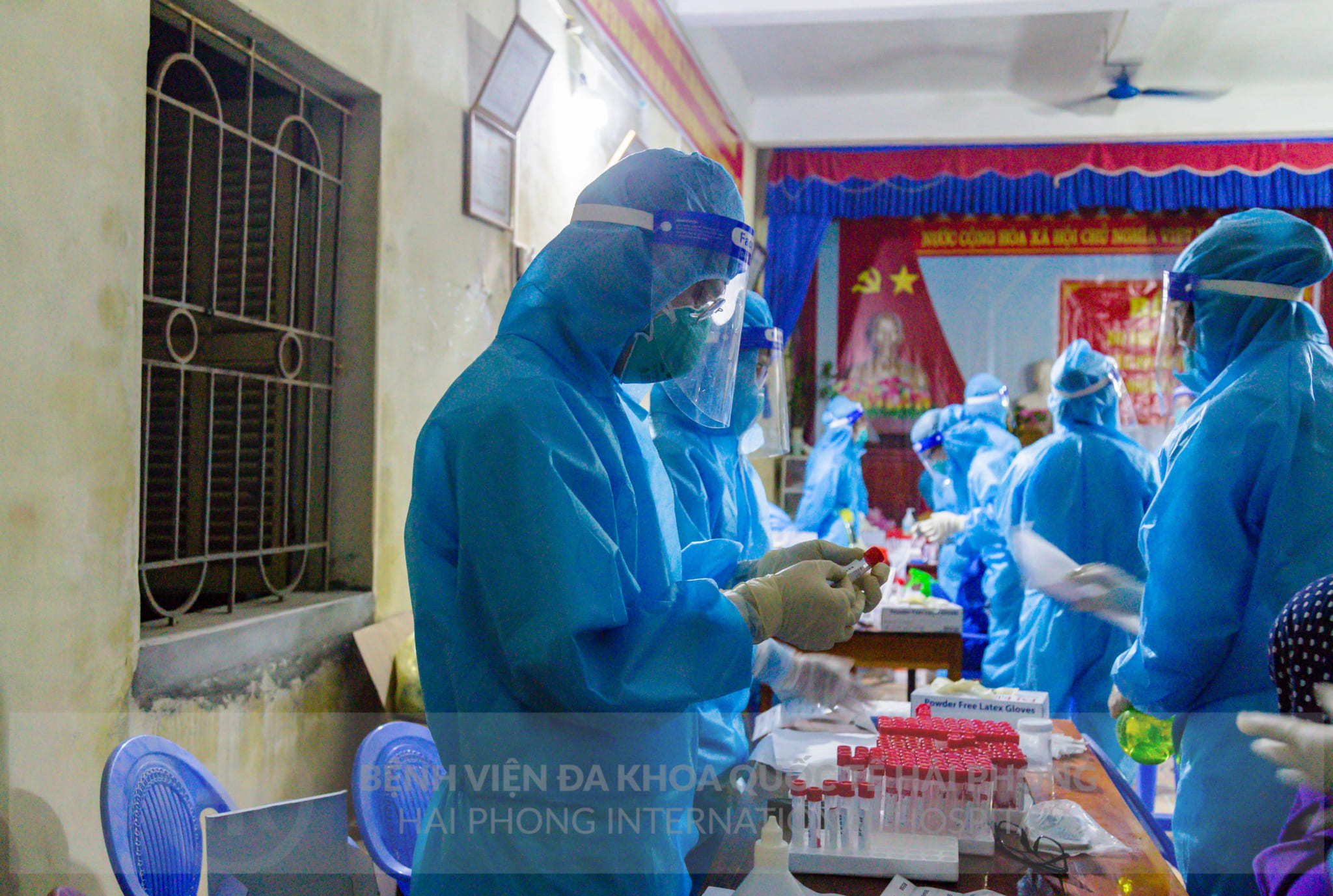Bệnh viện đa khoa Quốc tế Hải Phòng huy động tổng lực tham gia lấy mẫu xét nghiệm COVID 19 trên địa bàn huyện Tiên Lãng