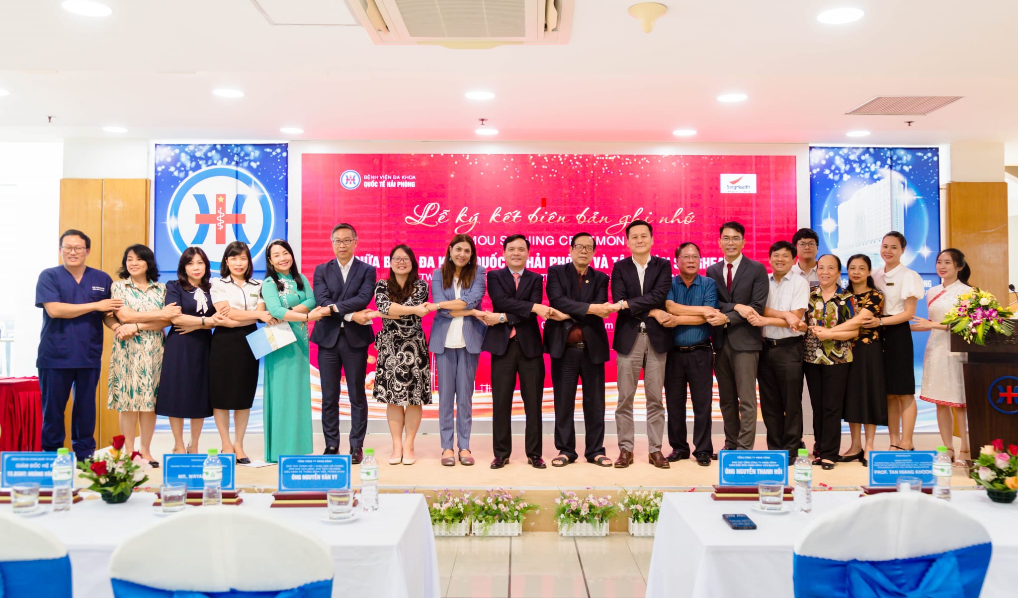 Chiều ngày 5/8, Bệnh viện đa khoa Quốc tế Hải Phòng đã tổ chức Lễ kí kết Biên bản ghi nhớ hợp tác giữa Bệnh viện với Tập đoàn SingHealth của Singapore. Tham dự Lễ ký kết, đại diện Tập đoàn SingHealth có: PGS.TS Tan Hiang Khoon, Phó GĐ hệ thống sức khỏe tương lai SGH, Tổng Giám đốc phòng hợp tác quốc tế ICO, Giám đốc viện sức khỏe toàn cầu SDGHI; Bà Vijaya Rao, Phó Giám đốc chương trình hệ thống sức khỏe lâm sàng, Trưởng phòng Hợp tác quốc tế; Ông Wayan Tjoa, Giám đốc cấp cao chương trình phát triển, Phó Trưởng phòng Hợp tác quốc tế; Bà Emmy Nguyễn Trí Khuê Phúc, Quản lý chương trình phát triển. Về phía Tổng Công ty Hàng Kênh có ông Nguyễn Văn Vy, Chủ tịch Thành Hội Y – Dược học Hải Phòng, Phó Chủ tịch HĐQT, Chủ tịch Hội đồng điều hành hệ thống bệnh viện, phòng khám; Ông Vũ Quốc Uy, Phó Tổng giám đốc; PGS. TS Nguyễn Thanh Hồi, Phó Tổng giám đốc, Giám đốc điều hành Bệnh viện Đa khoa quốc tế Hải Phòng cùng Ban Giám đốc và đại diện lãnh đạo các Khoa/phòng thuộc Bệnh viện.