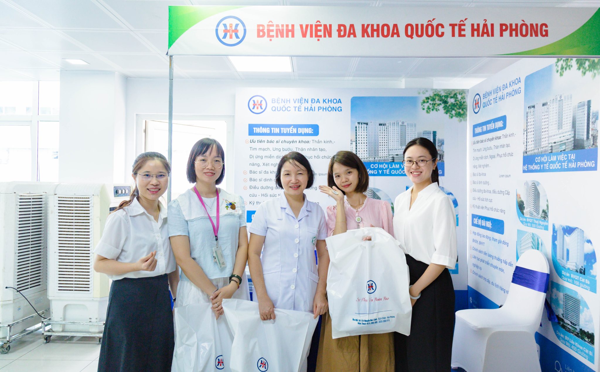 Tại Hội chợ, Bệnh viện đa khoa Quốc tế Hải Phòng có nhiều hoạt động kết nối nổi bật như: Giới thiệu về mô hình khám chữa bệnh hiện đại, tư vấn về cơ hội làm việc, định hướng nghề nghiệp, vị trí ứng tuyển của đơn vị cùng những chia sẻ trực tiếp từ đội ngũ nhân sự và chuyên gia y tế giàu kinh nghiệm. Đây là cầu nối để các bạn sinh viên hiểu rõ hơn về nhu cầu nguồn nhân lực y tế chất lượng cao, đồng thời tự tin định hướng lộ trình phát triển nghề nghiệp cho bản thân.