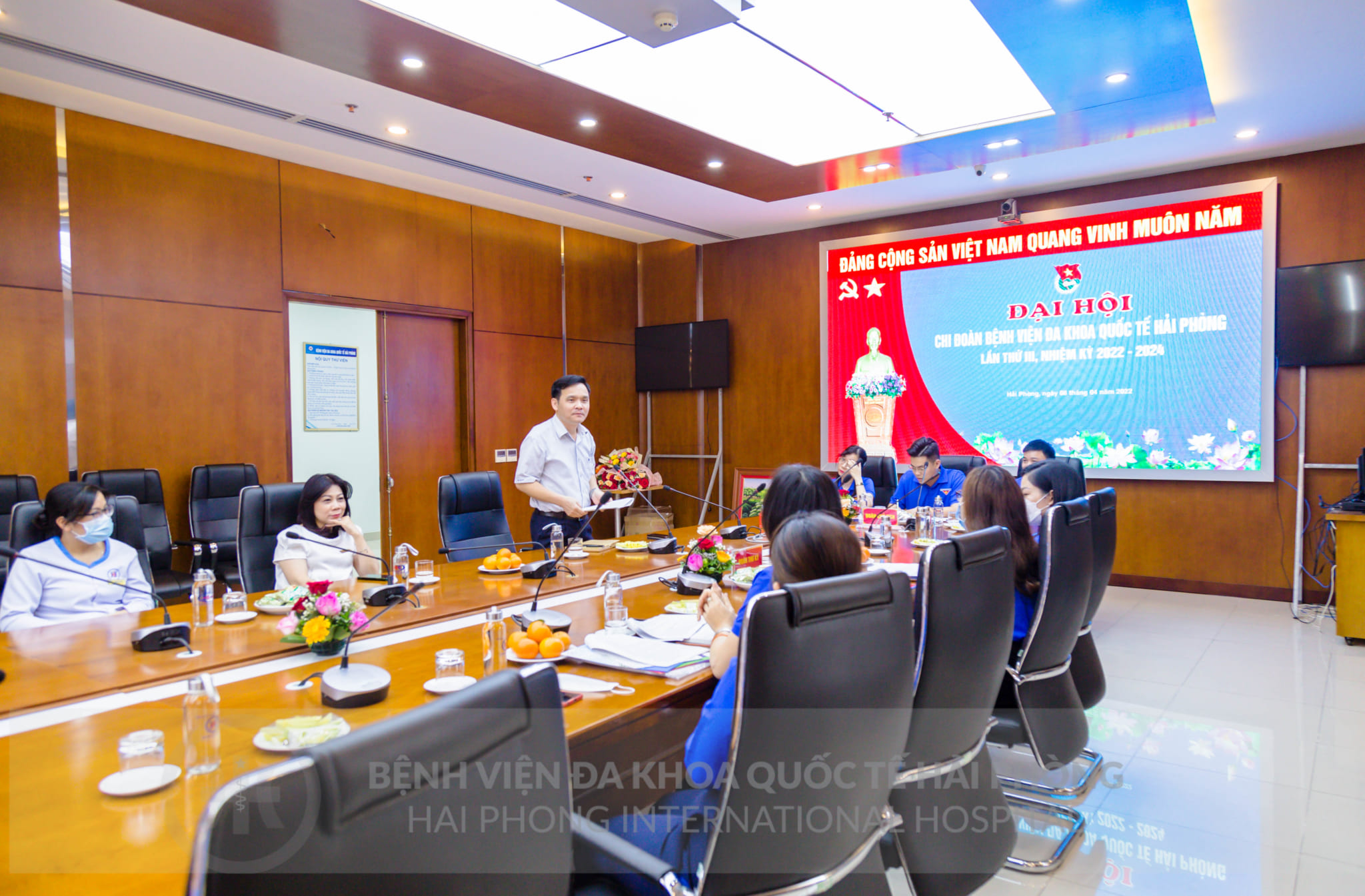 Chiều 08/04, Chi Đoàn Bệnh viện đa khoa Quốc tế Hải Phòng tổ chức Đại hội nhiệm kỳ 2022-2024. Tham dự Đại hội có đồng chí Nguyễn Thị Mỹ Dung – Bí thư Đoàn Thanh niên Tổng công ty; đồng chí Nguyễn Thanh Hồi – Bí thư Đảng ủy, Giám đốc điều hành Bệnh viện; đồng chí Vũ Thị Thúy Hương – Chủ tịch Công Đoàn cùng các đồng chí đoàn viên của bệnh viện.