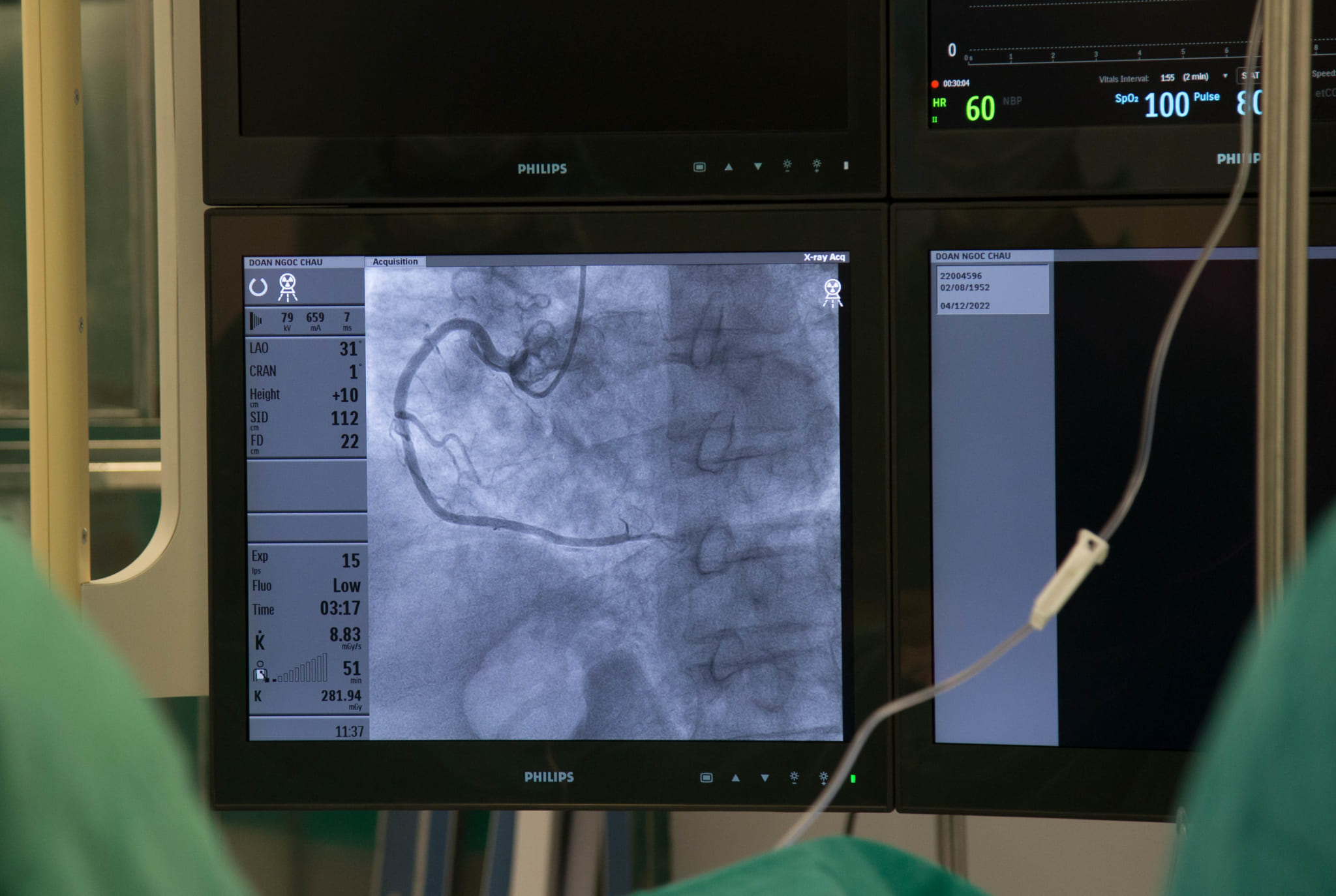 Trường hợp bệnh nhân vào viện với cơn đau thắt ngực ngắn trên nền có nguy cơ tăng huyết áp, đái tháo đường, rối loạn mỡ máu và tuổi cao. Bệnh nhân được chỉ định thực hiện kỹ thuật chụp động mạch qua da, phát hiện những tổn thương; từ đó có những theo dõi, điều trị, kiểm soát các yếu tố nguy cơ và thay đổi lối sống phù hợp.