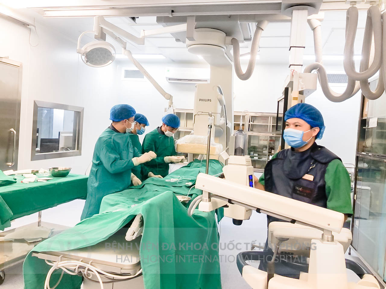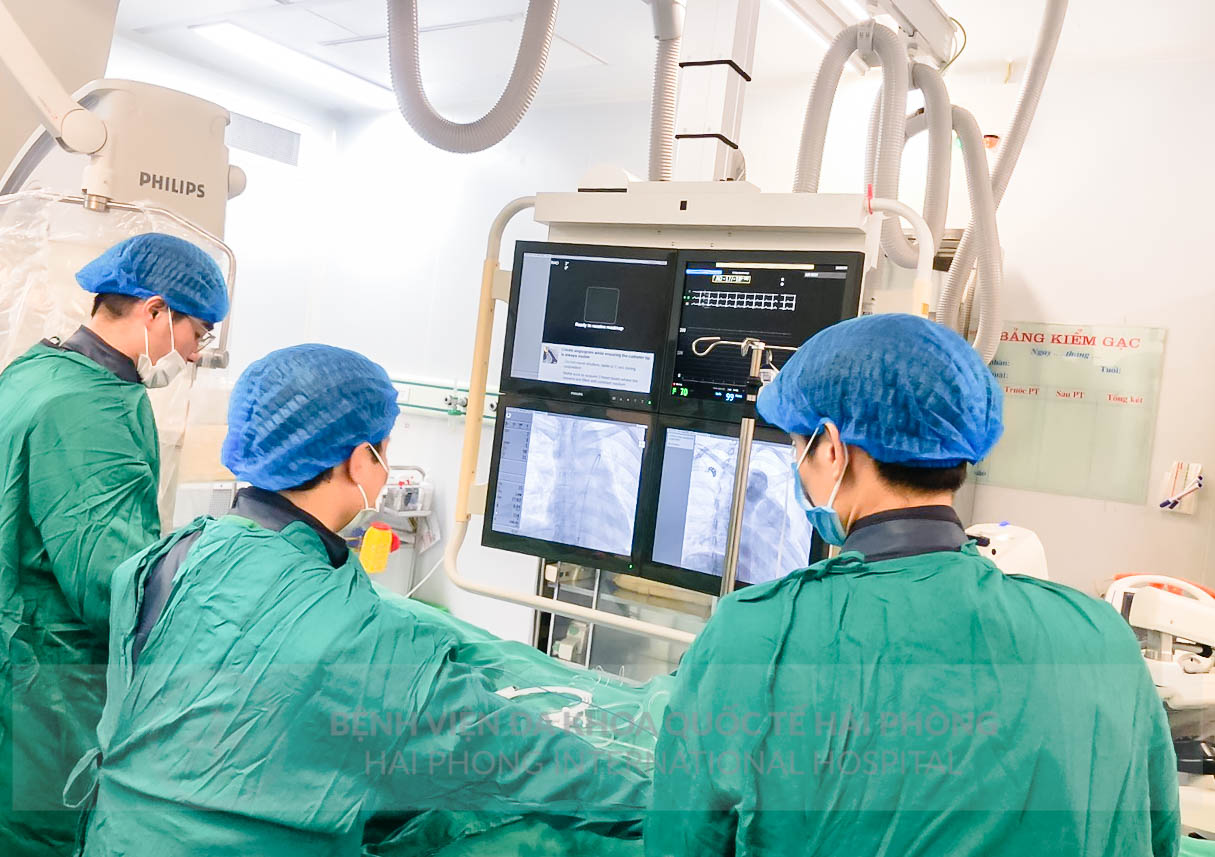 Người bệnh nhanh chóng được thực hiện bít ống động mạch, đây là một phương pháp tim mạch can thiệp không phẫu thuật, bằng cách đưa dụng cụ can thiệp qua đường mạch máu, sau đó vào tim và bít lỗ thông (thông liên nhĩ, thông liên thất) lại. Dưới sự hỗ trợ của chuyên gia Bệnh viện tuyến Trung ương, ekip bác sĩ Khoa Tim mạch, Bệnh viện đa khoa Quốc tế Hải Phòng đã thực hiện đóng thành công ống động mạch.