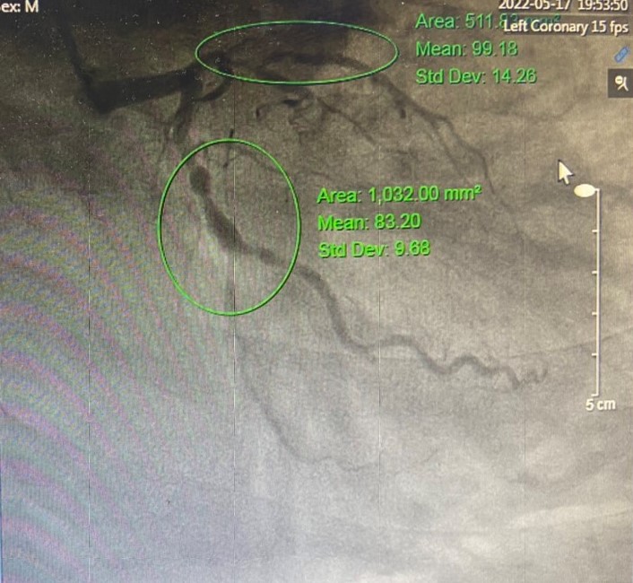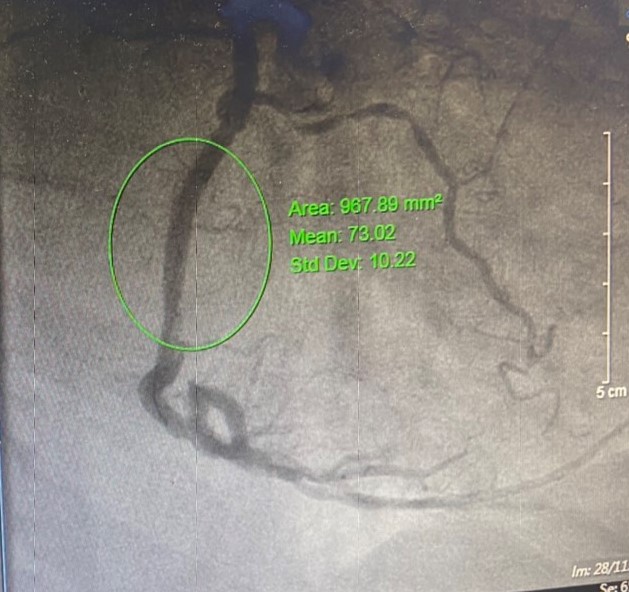 Kết quả chụp mạch vành phát hiện, tổn thương nặng 3 thân mạch vành, tắc mãn tính động mạch liên thất trước LAĐ, tắc hoàn toàn do xơ vữa và huyết khối động mạch RCA, hẹp 80-90% động mạch mũ. Dựa vào điện tim, các đánh giá và hình ảnh trên phim chụp cho thấy, thủ phạm gây tình trạng sốc tim, nhồi máu cơ tim cấp lần này là do tắc hoàn toàn động mạch vành phải RCA. Với sự phối hợp nhịp nhàng, chặt chẽ giữa các Khoa: Gây mê hồi sức, Tim mạch – Đột quỵ, kíp bác sĩ đã nhanh chóng tiến hành can thiệp đặt stent động mạch RCA, sau đó tái thông hoàn toàn, tuần hoàn dòng chảy tốt. Sau can thiệp, nhịp tim, huyết động bệnh nhân đã trở về bình thường, huyết áp tốt, hết đau ngực, được theo dõi và điều trị tại Khoa Tim mạch – Đột quỵ.