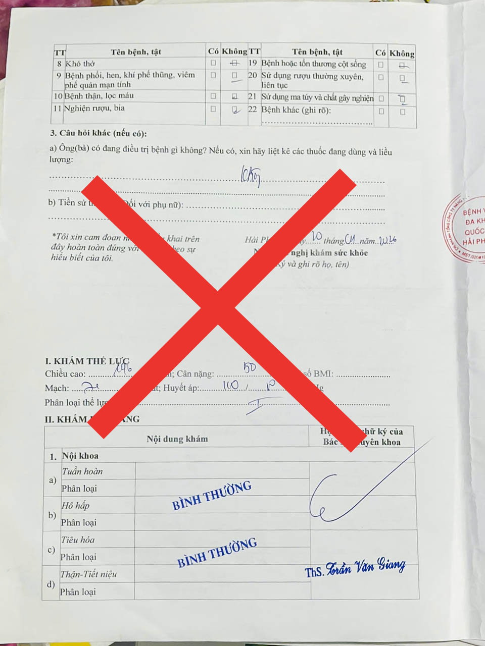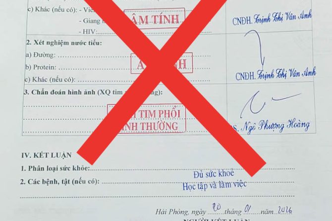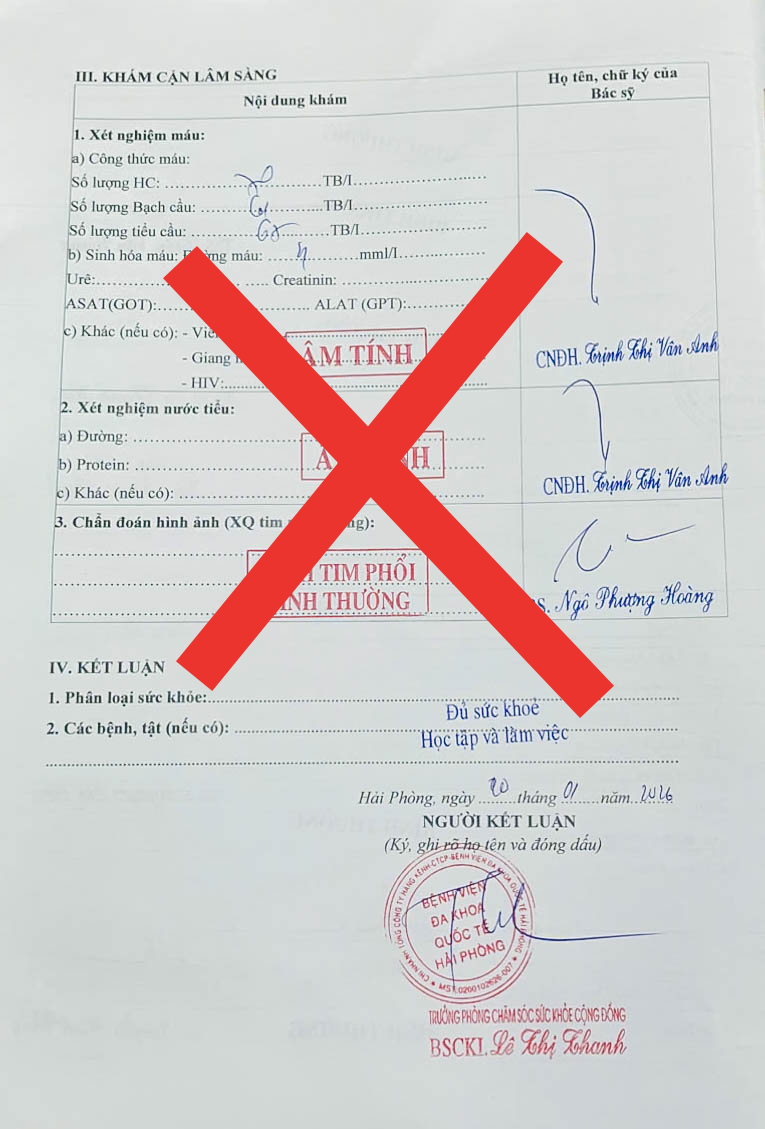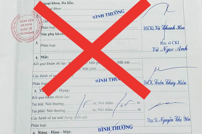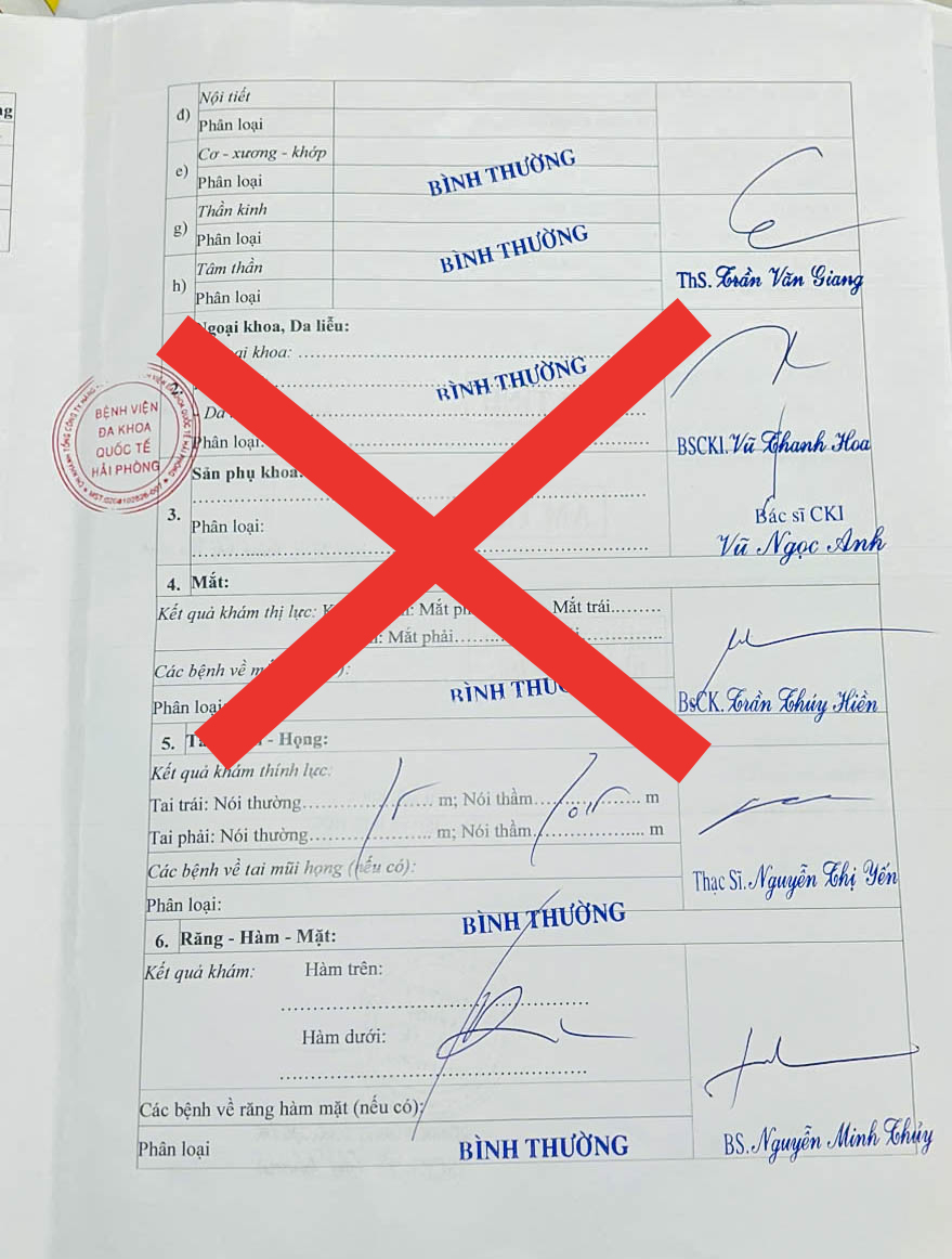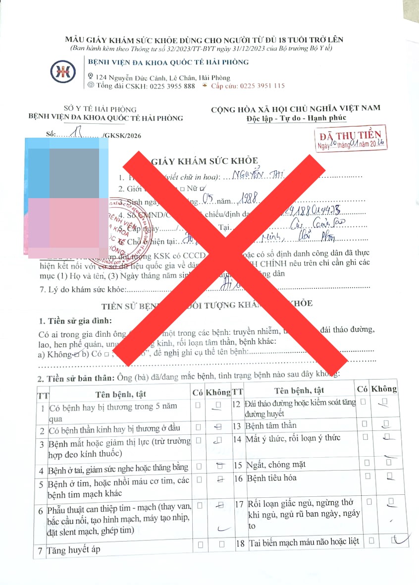 CẢNH BÁO TÌNH TRẠNG LÀM GIẢ GIẤY KHÁM SỨC KHỎE BỆNH VIỆN ĐA KHOA QUỐC TẾ HẢI PHÒNG