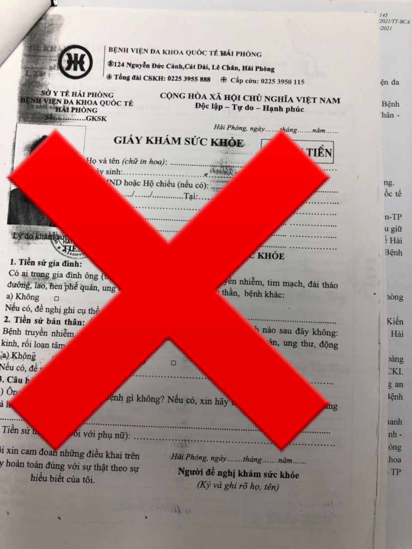 Cảnh báo tình trạng làm giả giấy khám sức khỏe của Bệnh viện đa khoa quốc tế Hải Phòng