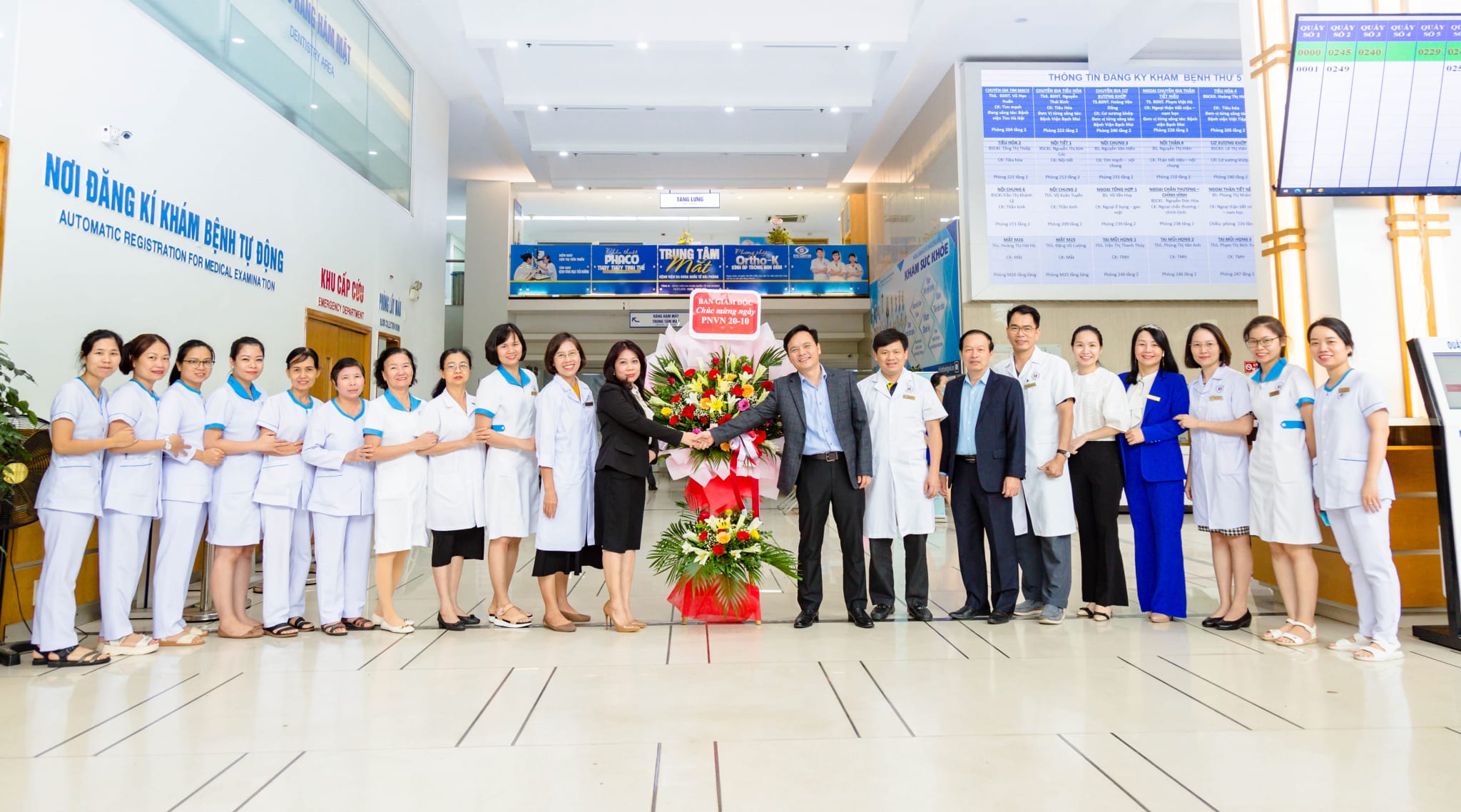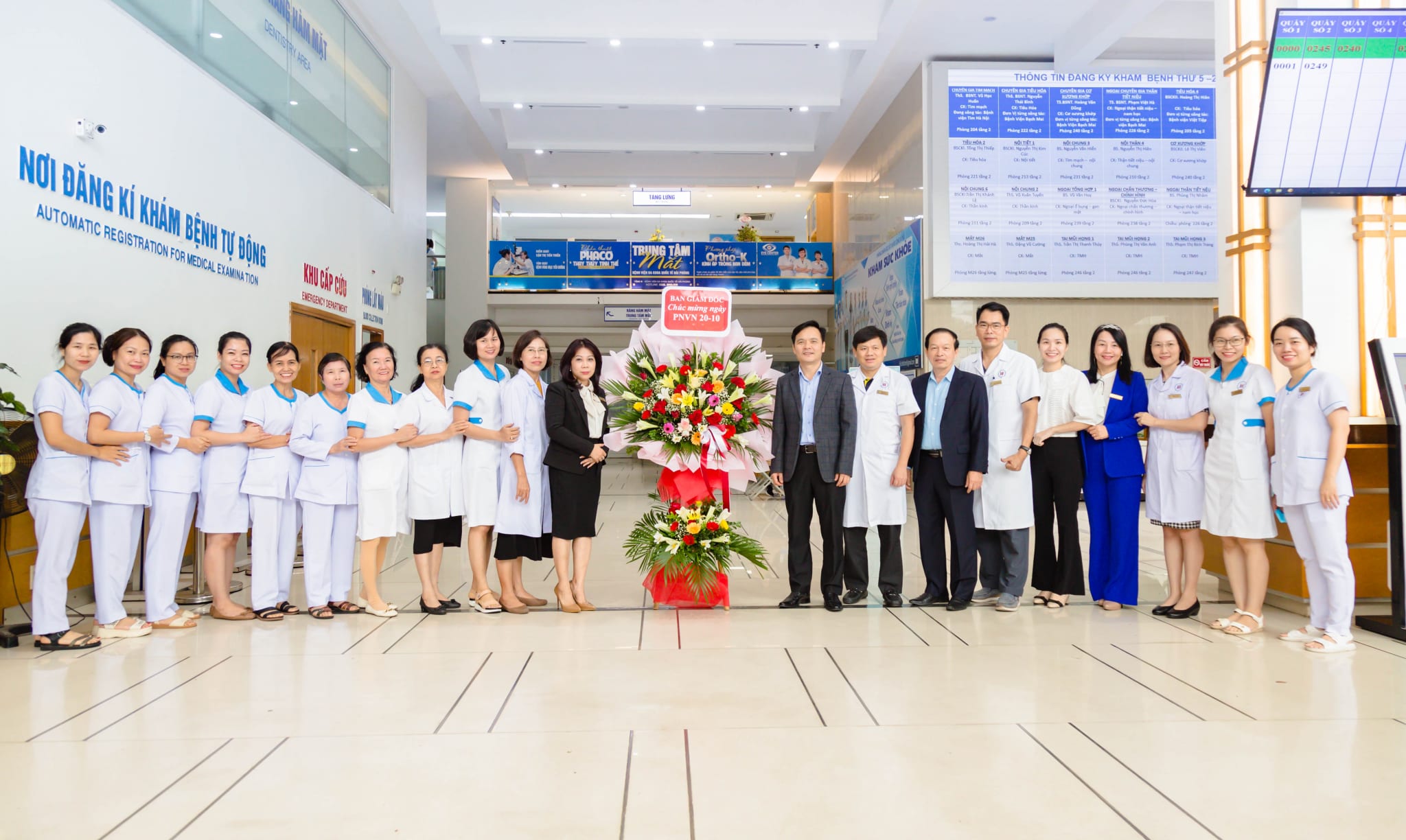 Nhân Ngày Phụ nữ Việt Nam 20/10, Ban Giám đốc Bệnh viện đa khoa quốc tế Hải Phòng đã tặng hoa chúc mừng các nữ cán bộ, viên chức, người lao động đang công tác tại Bệnh viện. Bà Vũ Thị Thúy Hương, Chủ tịch Công đoàn, Trưởng ban Nữ công cùng đại diện nữ lãnh đạo các khoa, phòng, thay mặt đội ngũ nhân sự nữ của Bệnh viện đón nhận hoa chúc mừng.