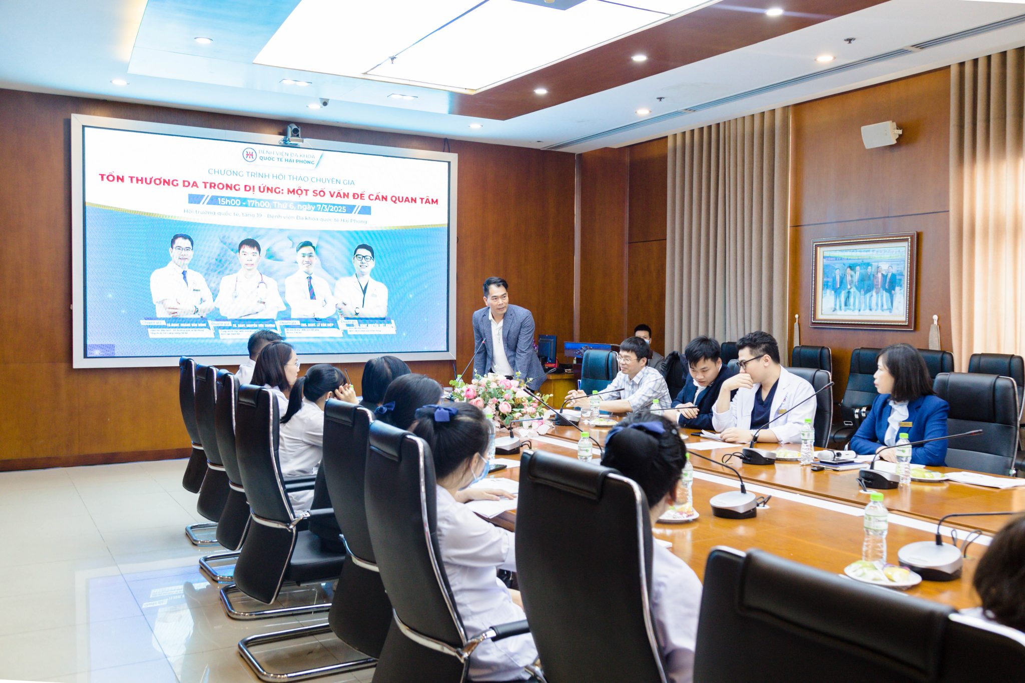Chiều ngày 07/3, Bệnh viện đa khoa Quốc tế Hải Phòng tổ chức thành công Hội thảo chuyên gia với chủ đề: “Tổn thương da trong dị ứng: Một số vấn đề cần quan tâm”. Tham dự hội thảo có: TS. BSNT. Hoàng Văn Dũng – Giám đốc điều hành Bệnh viện đa khoa quốc tế Hải Phòng; TS. BSNT. Nguyễn Hữu Trường – Trung tâm Dị ứng – Miễn dịch lâm sàng Bệnh viện Bạch Mai; ThS. BSNT. Lê Văn Hiệp – Bộ môn Dị ứng – Miễn dịch lâm sàng, Đại học Y Hà Nội; ThS.BSNT. Nguyễn Việt Khánh – Khoa Nội tổng hợp 2, Bệnh viện đa khoa Quốc tế Hải Phòng cùng gần 70 đại biểu là các y bác sĩ đến từ các Bệnh viện, Trung tâm Y tế trong và ngoài thành phố tham dự.