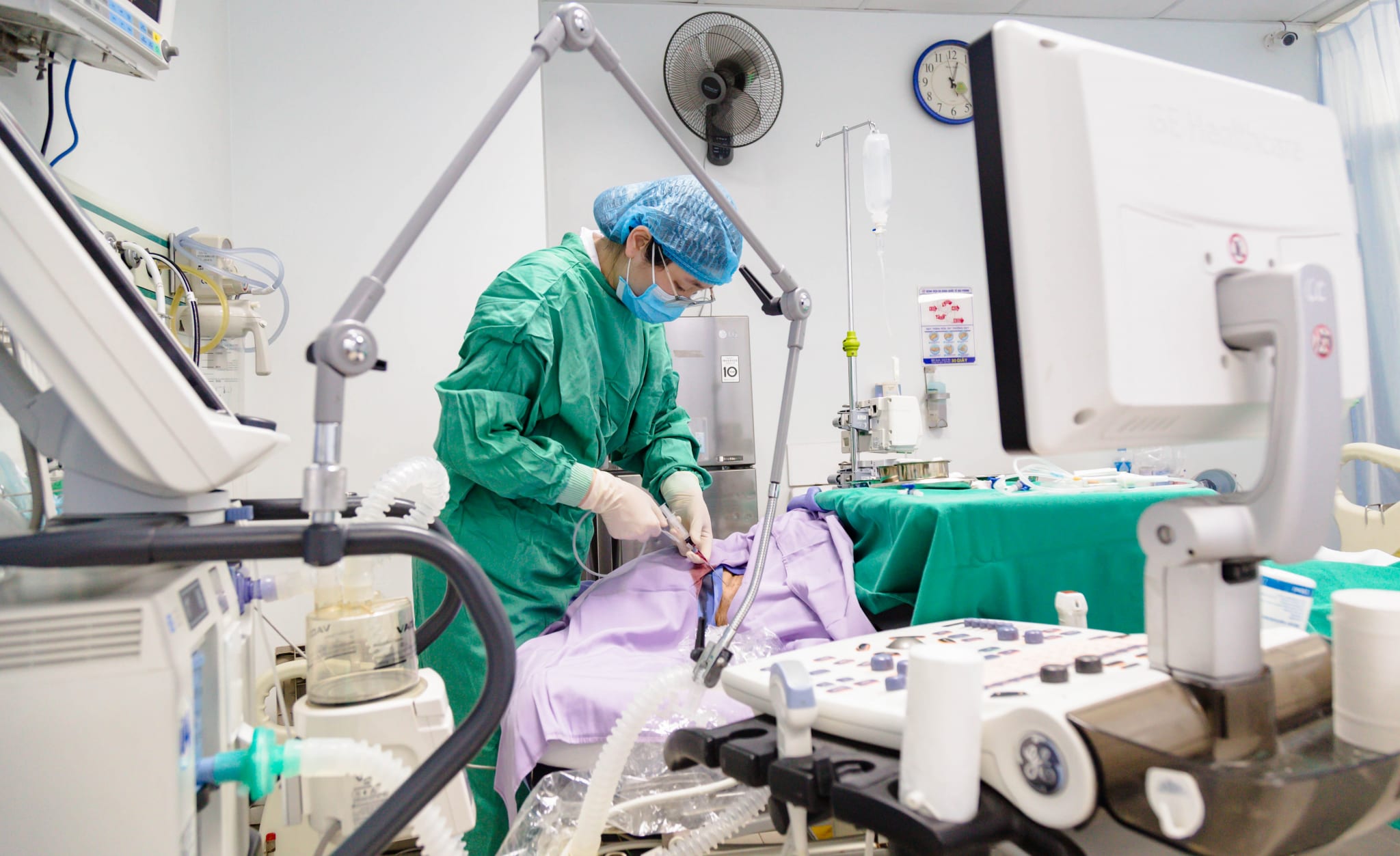11h00 ngày 21/03, bệnh nhân thở máy không xâm nhập không đáp ứng, duy trì 3 vận mạch liều cao, tình trạng suy tạng tăng lên, toan chuyển hóa, SOFA 12 điểm (dự báo tỷ lệ tử vong > 95%). Ngay lập tức được bác sĩ xử trí đặt ống nội khí quản, thở máy xâm nhập. Sau khi đặt ống nội khí quản, huyết áp tiếp tục giảm mạnh, duy trì 3 vận mạch liều cao, vô niệu, bệnh nhân được lọc máu liên tục trong 4 ngày.