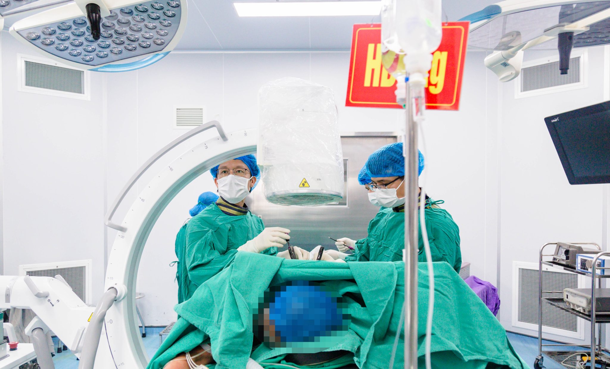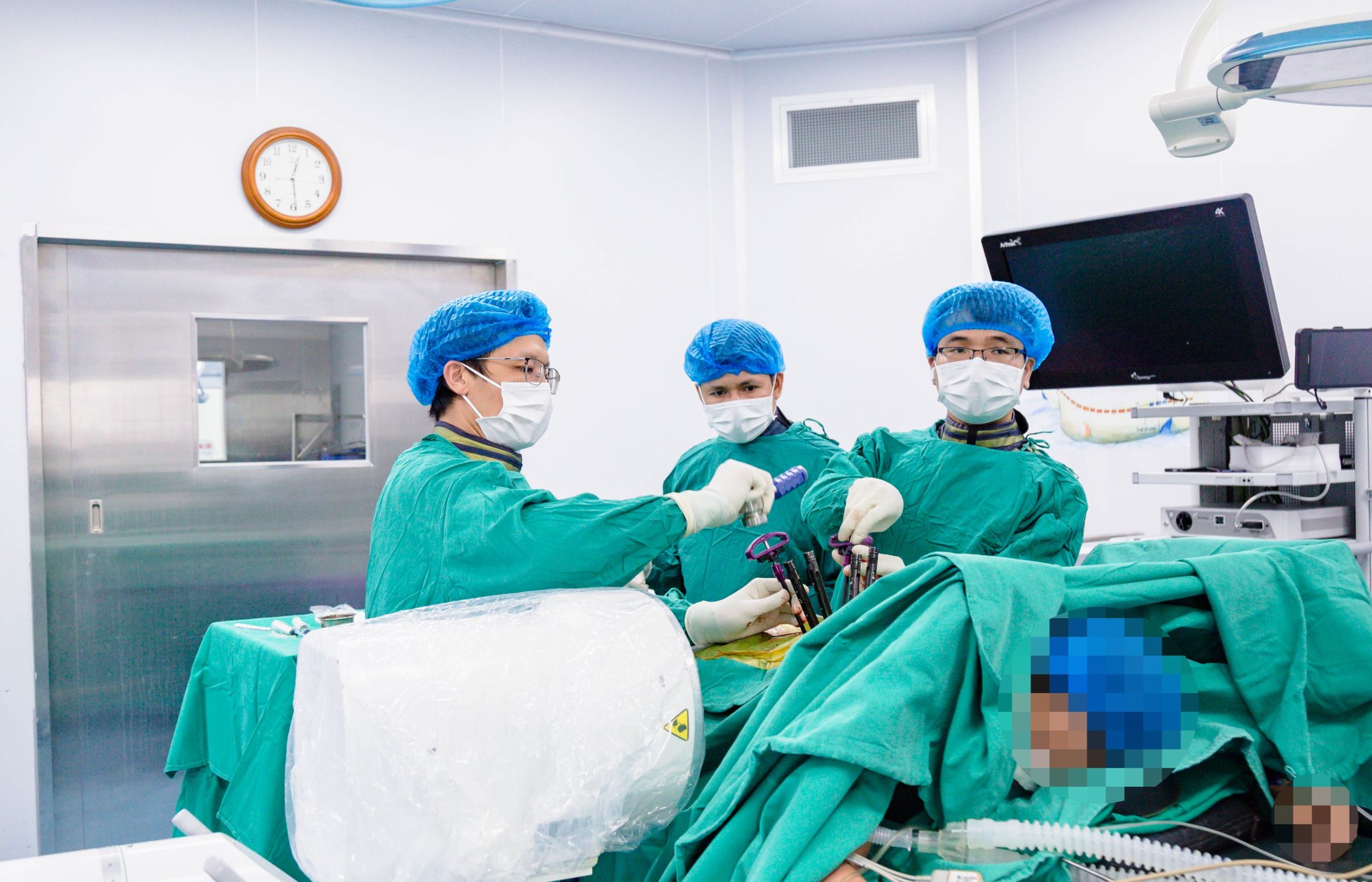 Căn cứ vào tình trạng của bệnh nhân, nhanh chóng, các bác sĩ Khoa Ngoại chấn thương chỉnh hình tiến hành hội chẩn và quyết định lựa chọn “Phẫu thuật bắt vít qua cuống cột sống thắt lưng qua da” với mục tiêu giảm đau (ít hơn so với mổ mở kinh điển), không làm tổn thương hệ thống dây chằng phía sau cột sống giúp người bệnh vận động sớm sau phẫu thuật.