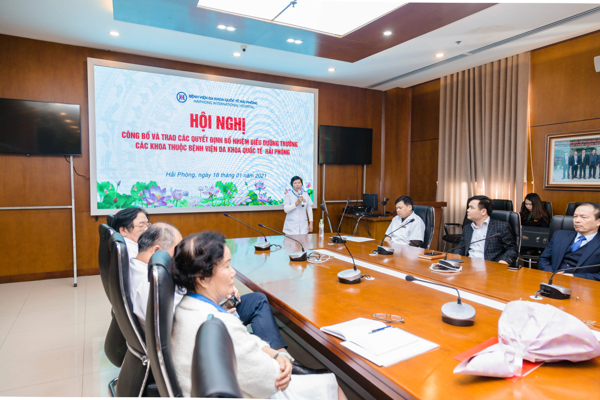 Chiều ngày 18/1, Bệnh viện đa khoa Quốc tế Hải Phòng đã tổ chức Công bố và trao các quyết định bổ nhiệm điều dưỡng trưởng các Khoa thuộc Bệnh viện. Tham dự Hội nghị có Ban Giám đốc cùng lãnh đạo các Khoa, Phòng và điều dưỡng trưởng các Khoa thuộc Bệnh viện đa khoa Quốc tế Hải Phòng.