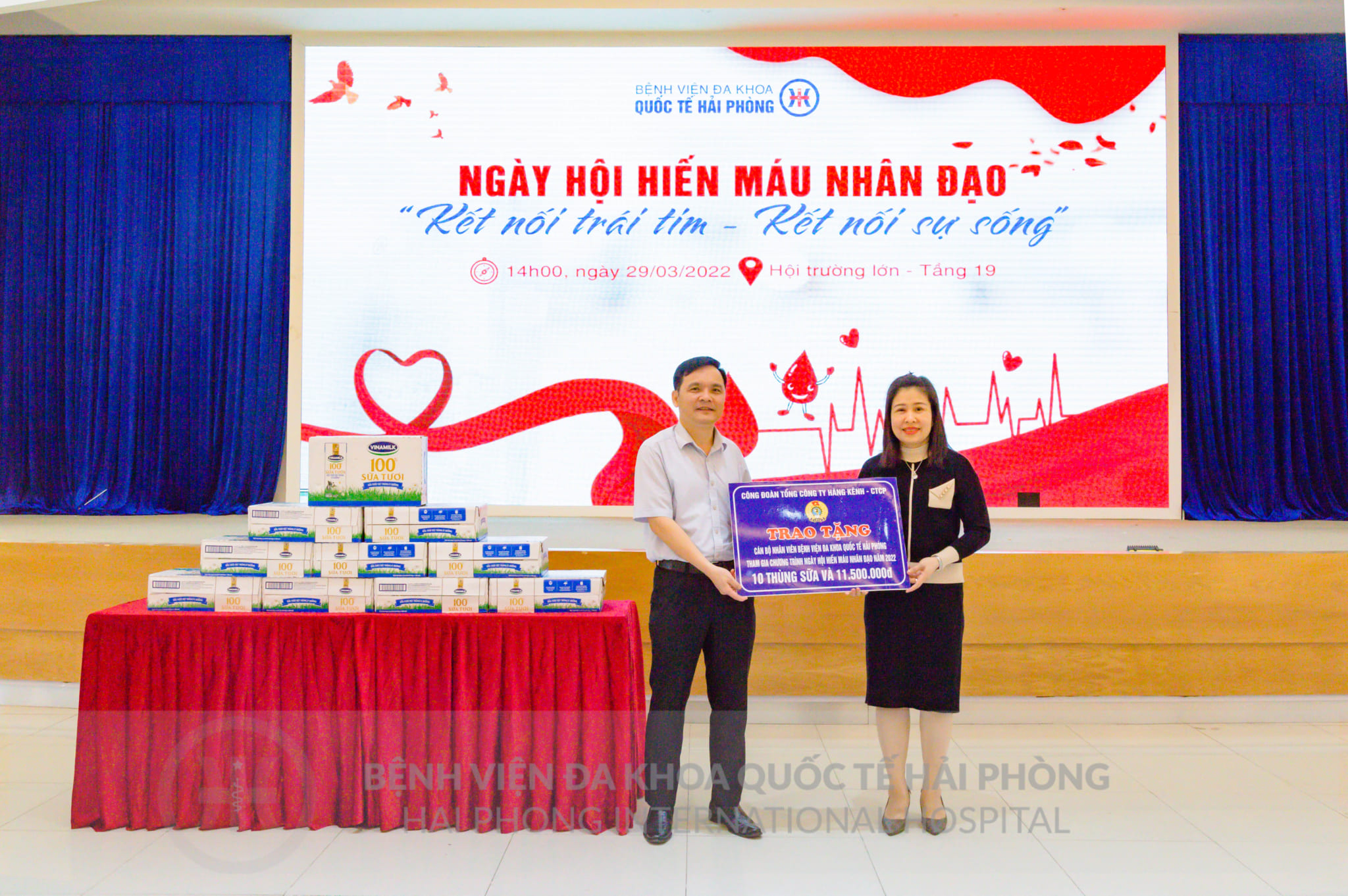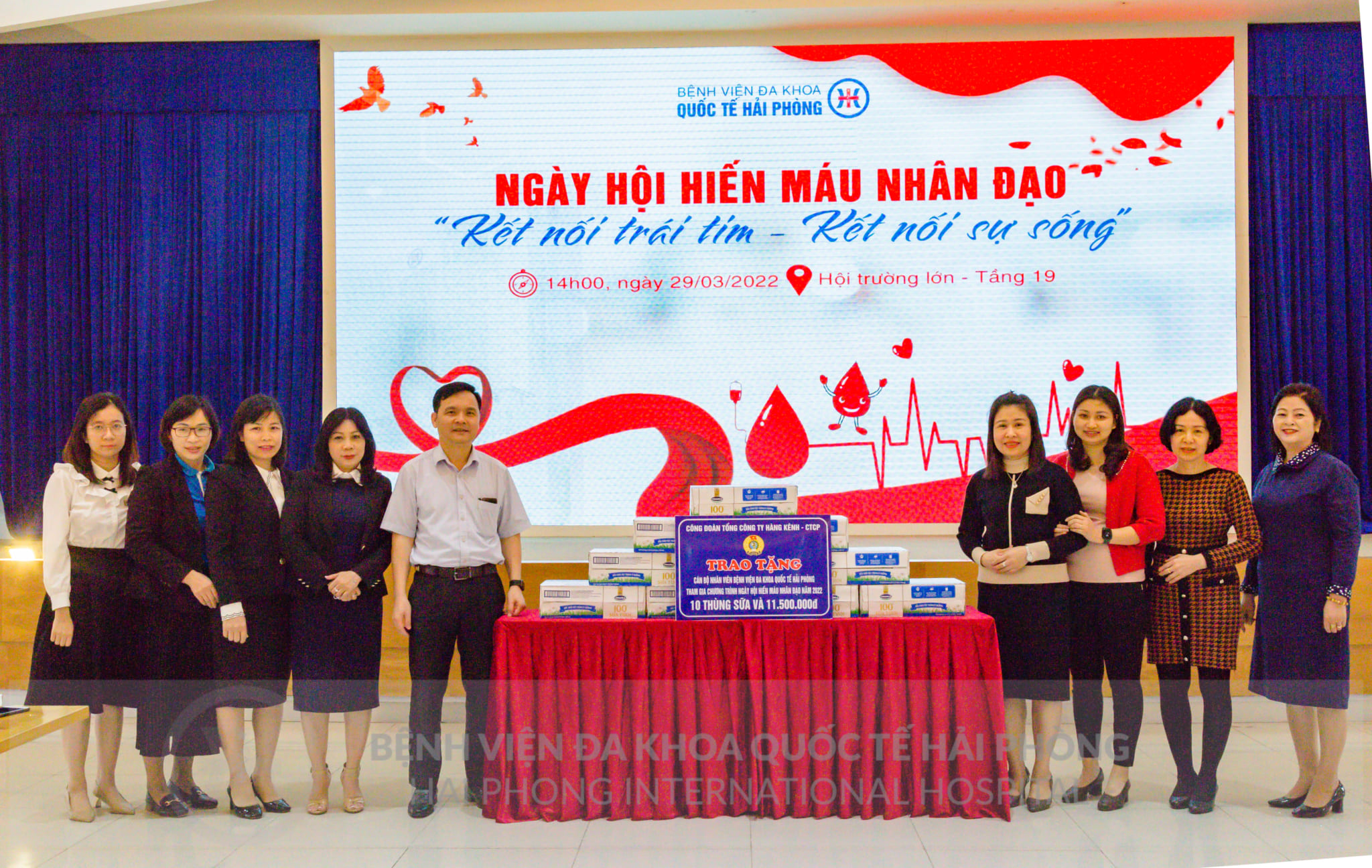 Công đoàn Tổng Công ty Hàng Kênh tặng quà cán bộ nhân viên Bệnh viện đa khoa Quốc tế Hải Phòng tham gia chương trình Ngày hội hiến máu nhân đạo năm 2022