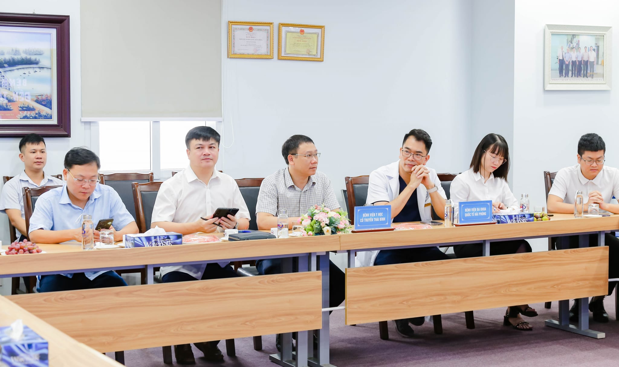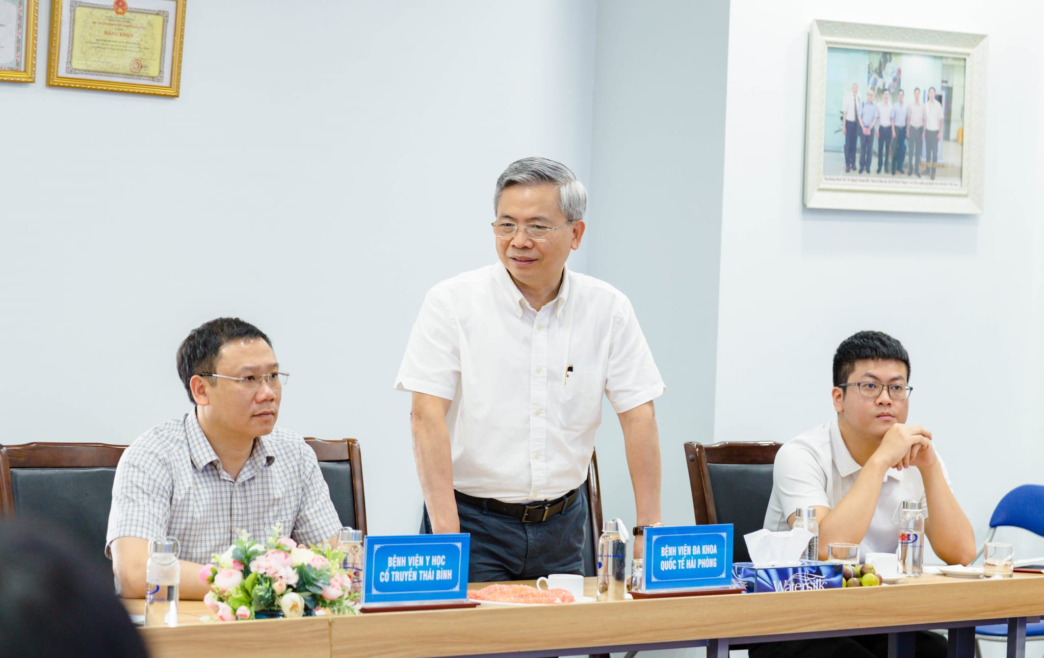 Sáng ngày 2/8, Đoàn công tác Bệnh viện Y học cổ truyền Thái Bình do ông Hà Trung Kiên – Phó Giám đốc Sở Y tế Thái Bình; ông Nguyễn Hùng Việt – Giám đốc Bệnh viện làm Trưởng đoàn đến thăm quan, trao đổi kinh nghiệm về triển khai Bệnh án điện tử tại Bệnh viện đa khoa quốc tế Hải Phòng. Đón tiếp đoàn về phía Bệnh viện đa khoa quốc tế Hải Phòng có: GS. TS Phạm Minh Thông – Giám đốc điều hành; TS. Hoàng Văn Dũng – Giám đốc chuyên môn cùng đại diện các Phòng liên quan.