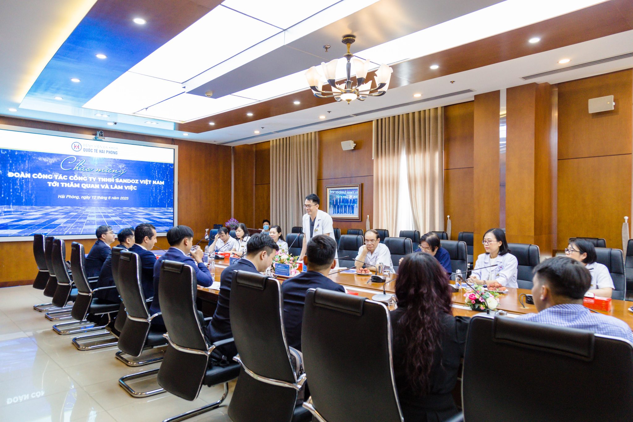 Trong không khí cởi mở và thân tình, hai đơn vị đã có những giới thiệu tổng quan, trao đổi, chia sẻ về các hoạt động đồng hành trong công tác điều trị cho người bệnh cũng như các hoạt động khoa học giữa Bệnh viện đa khoa quốc tế Hải Phòng và Công ty TNHH Sandoz Việt Nam. Đoàn cũng đã tham quan hệ thống cơ sở vật chất, mô hình hoạt động tại các Khoa của Bệnh viện.