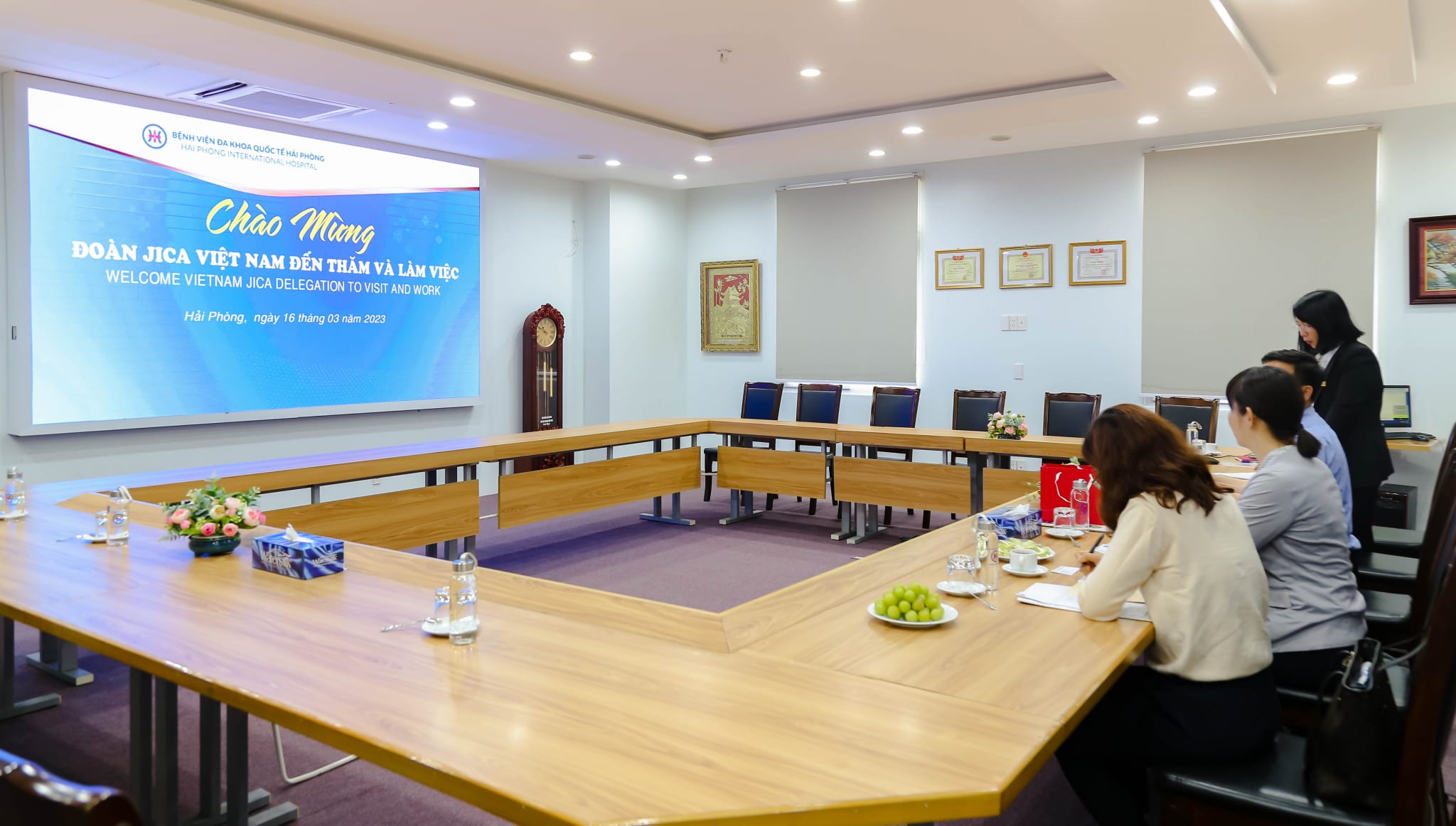 Sáng ngày 16/3, Đoàn cán bộ thuộc Jica Việt Nam với các đại diện: Bà Okita Yuko, cán bộ Y tế Văn phòng Jica Việt Nam; Bà Nguyễn Thu Hà, cán bộ Văn phòng Jica Việt Nam đến thăm và làm việc, tìm hiểu về điều kiện cơ sở vật chất, nhân lực, cùng các điều kiện có thể đáp ứng của Bệnh viện đa khoa quốc tế Hải Phòng trong trường hợp các chuyên gia, cán bộ của Jica đến khám, chữa bệnh. Đón tiếp đoàn về phía Bệnh viện có PGS.TS Nguyễn Thanh Hồi – Giám đốc điều hành; ThS. Hoàng Minh Ngọc – Trưởng Phòng Truyền thông và Chăm sóc khách hàng.