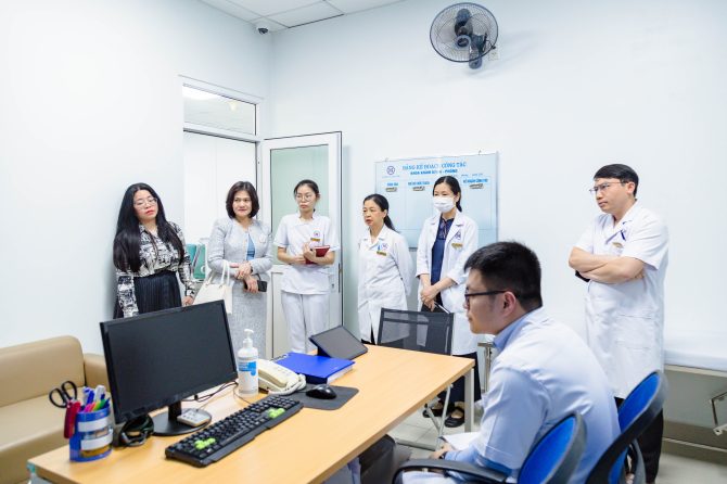 Đón tiếp Đoàn về phía Bệnh viện có: TS.BSNT. Hoàng Văn Dũng – Giám đốc điều hành Bệnh viện; THS.BSNT. Nguyễn Thái Bình – Giám đốc chuyên môn cùng đại diện chuyên môn đến từ các Khoa, Phòng liên quan.