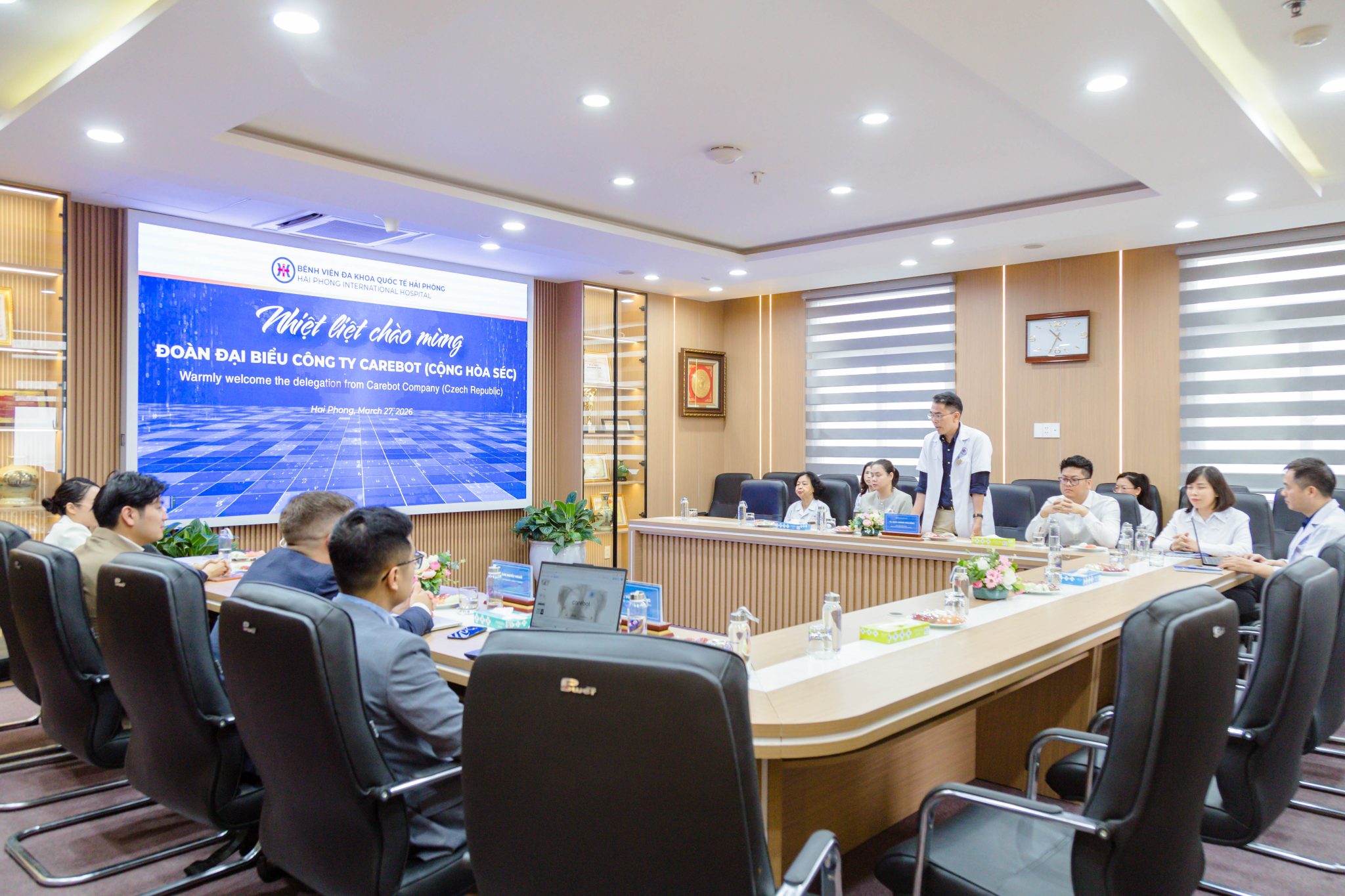 Sáng ngày 27/3, Đoàn công tác Công ty Carebot (Cộng hòa Séc) do ông Matěj Misař, Tổng Giám đốc Công ty Carebot làm trưởng đoàn đã đến thăm và làm việc với Bệnh viện đa khoa Quốc tế Hải Phòng.