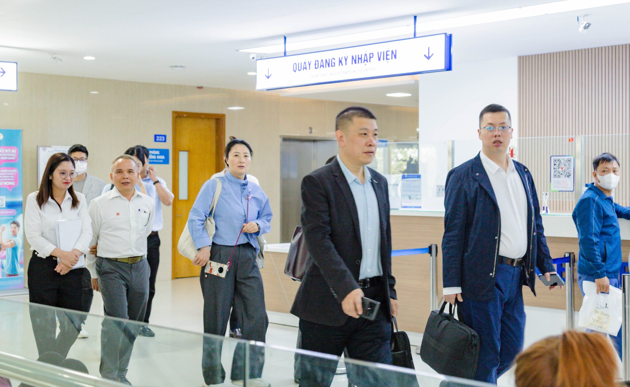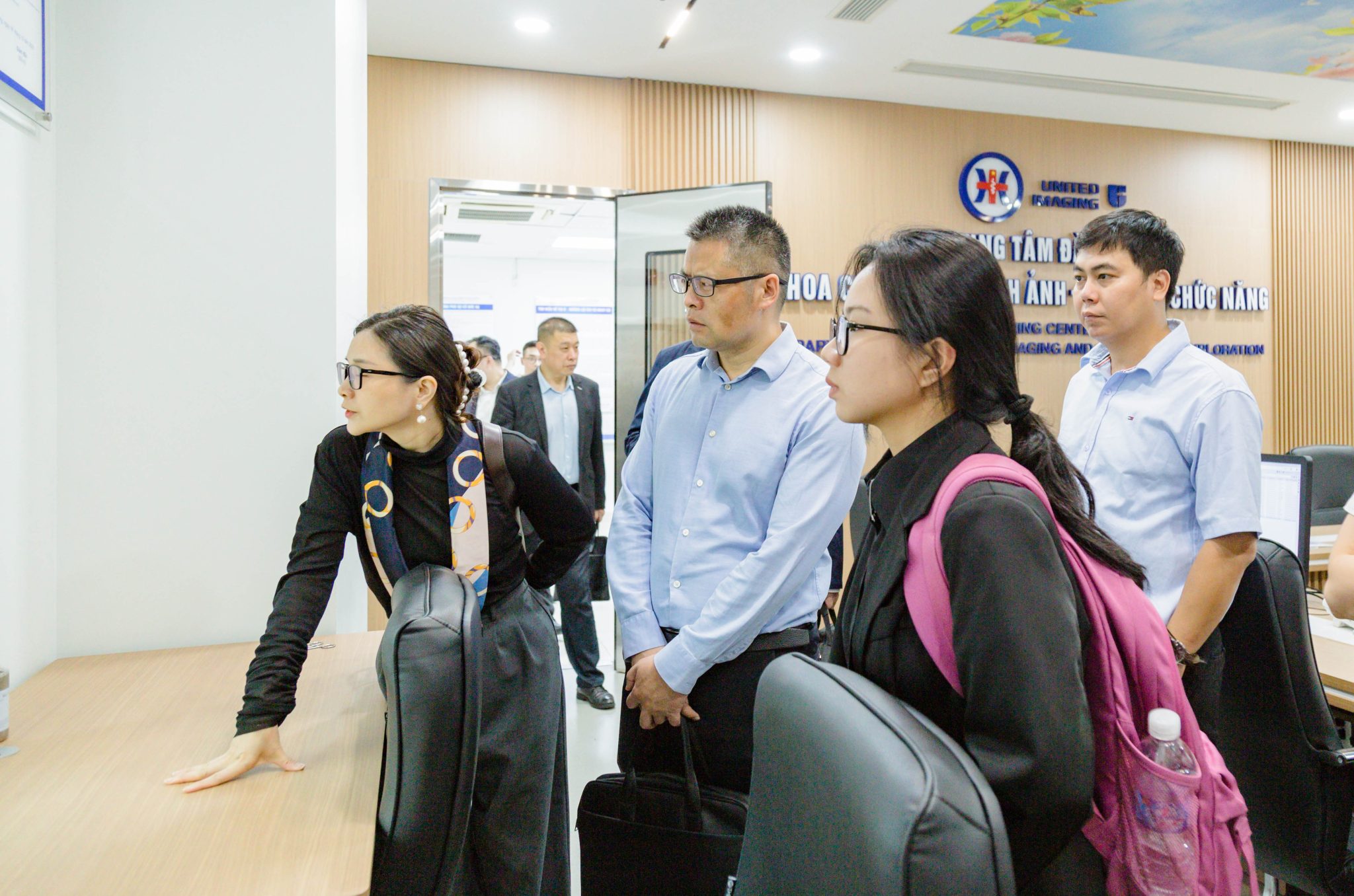 Sau phiên thảo luận, Đoàn đã thăm quan thực tế hoạt động tại Khu tiếp đón, xét nghiệm; Khoa Chẩn đoán hình ảnh – Thăm dò chức năng của Bệnh viện.