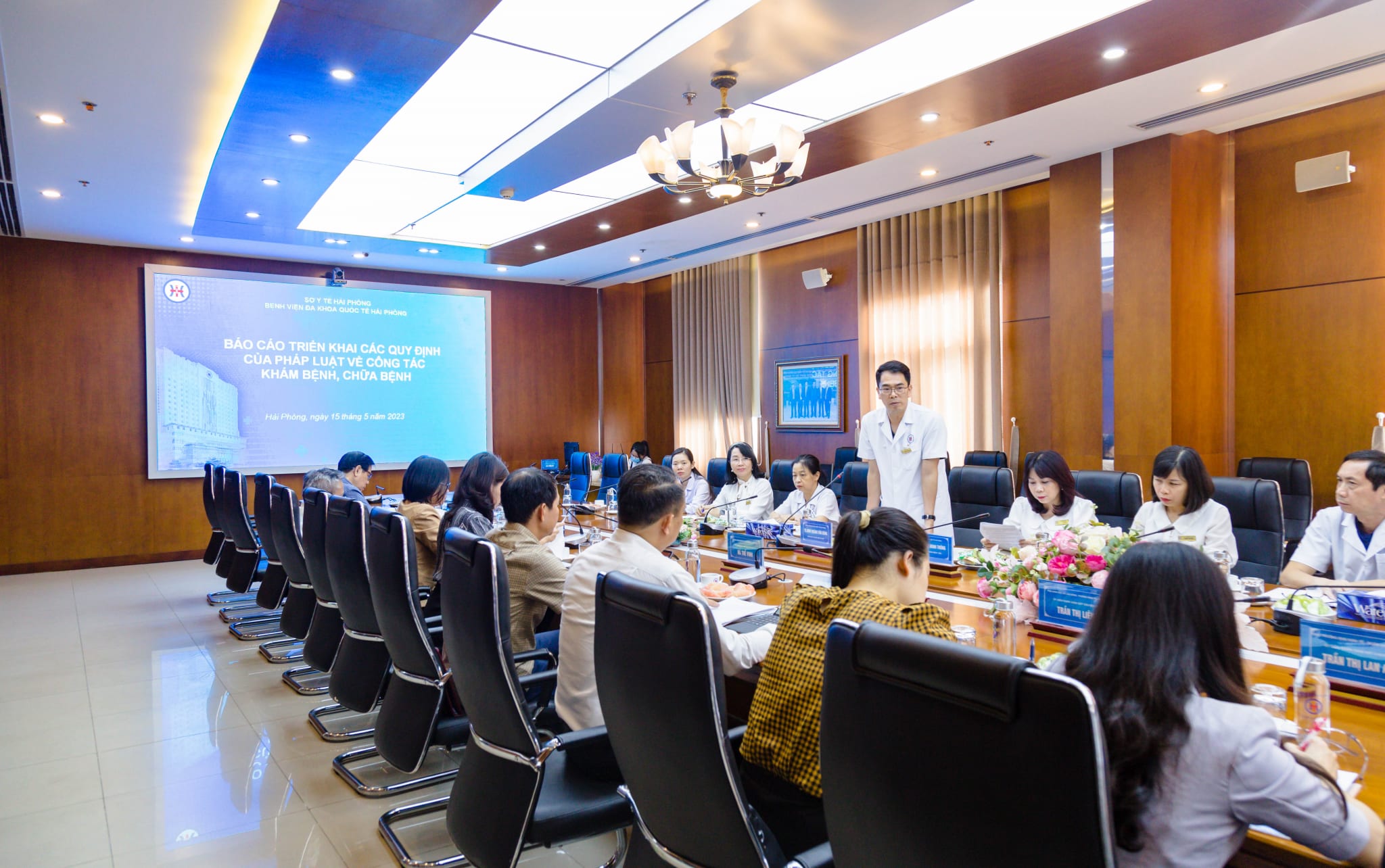 Tại chương trình làm việc, Bệnh viện đã trình bày báo cáo việc triển khai các quy định của pháp luật về khám bệnh, chữa bệnh tại Bệnh viện đồng thời đoàn giám sát đã thăm quan thực tế tại các đơn vị khoa/Phòng thuộc Bệnh viện đa khoa quốc tế Hải Phòng. Qua báo cáo, ý kiến và kiểm tra thực tế, Đoàn đã ghi nhận Bệnh viện thực hiện nghiêm túc các quy định về công tác khám, chữa bệnh, góp phần tích cực trong chăm sóc, bảo vệ sức khỏe người dân thành phố; thực hiện hiệu quả công tác phòng chống dịch phòng dịch COVID. Đồng thời đề nghị Bệnh viện tiếp tục phát huy thế mạnh, tạo bước đột phá trong chuyên môn, nghiệp vụ để có thể ngày càng nâng cao hơn nữa chất lượng khám, chữa bệnh phục vụ người dân và các địa phương lân cận.