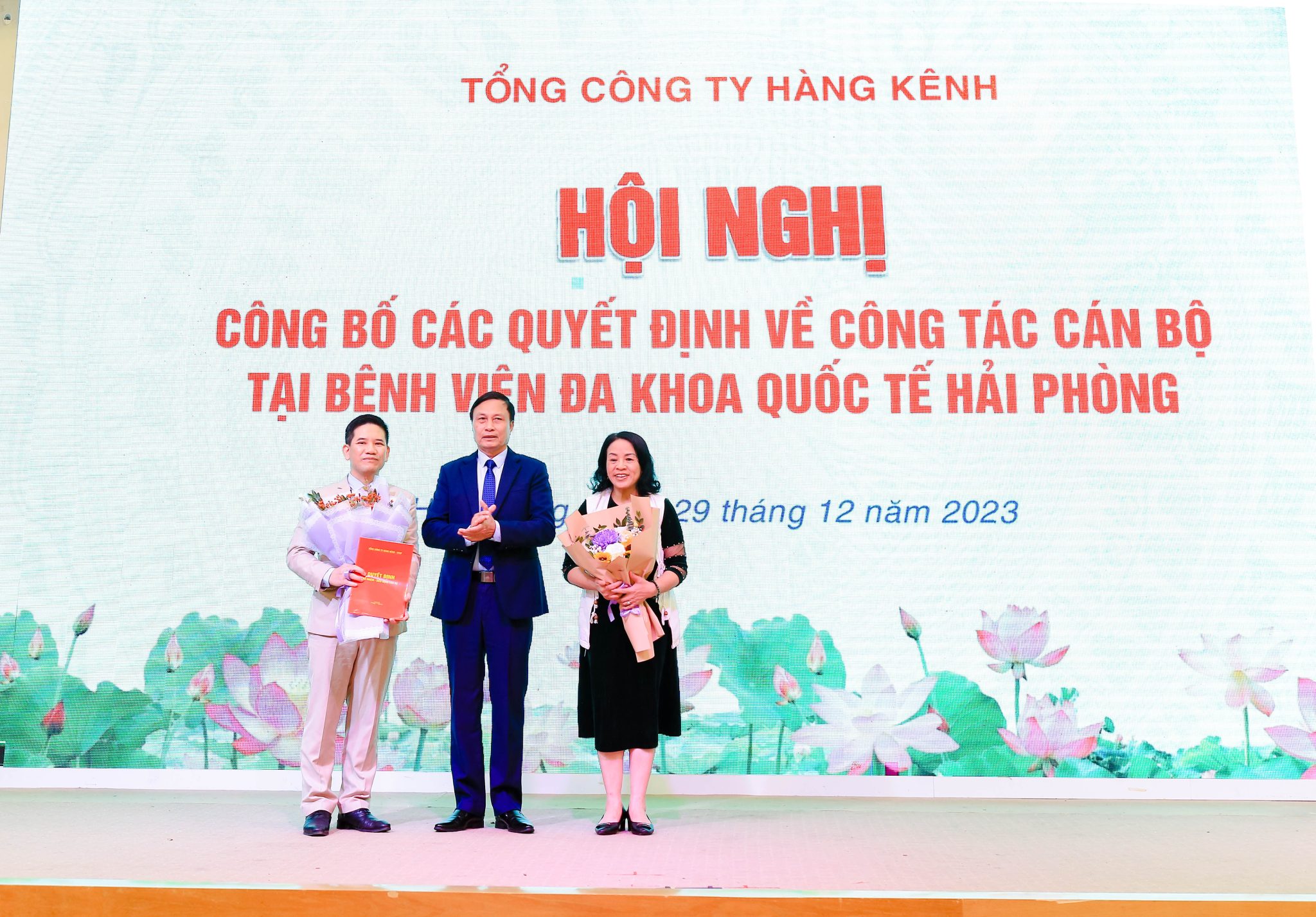 Tại hội nghị đã công bố và trao các quyết định của Tổng công ty về việc GS.TS. Phạm Minh Thông – Phó Chủ tịch Hội đồng quản trị thôi kiêm nhiệm giữ chức vụ Giám đốc điều hành Bệnh viện đa khoa quốc tế Hải Phòng. Bổ nhiệm TS.BSNT. Hoàng Văn Dũng giữ chức vụ Giám đốc điều hành Bệnh viện.
