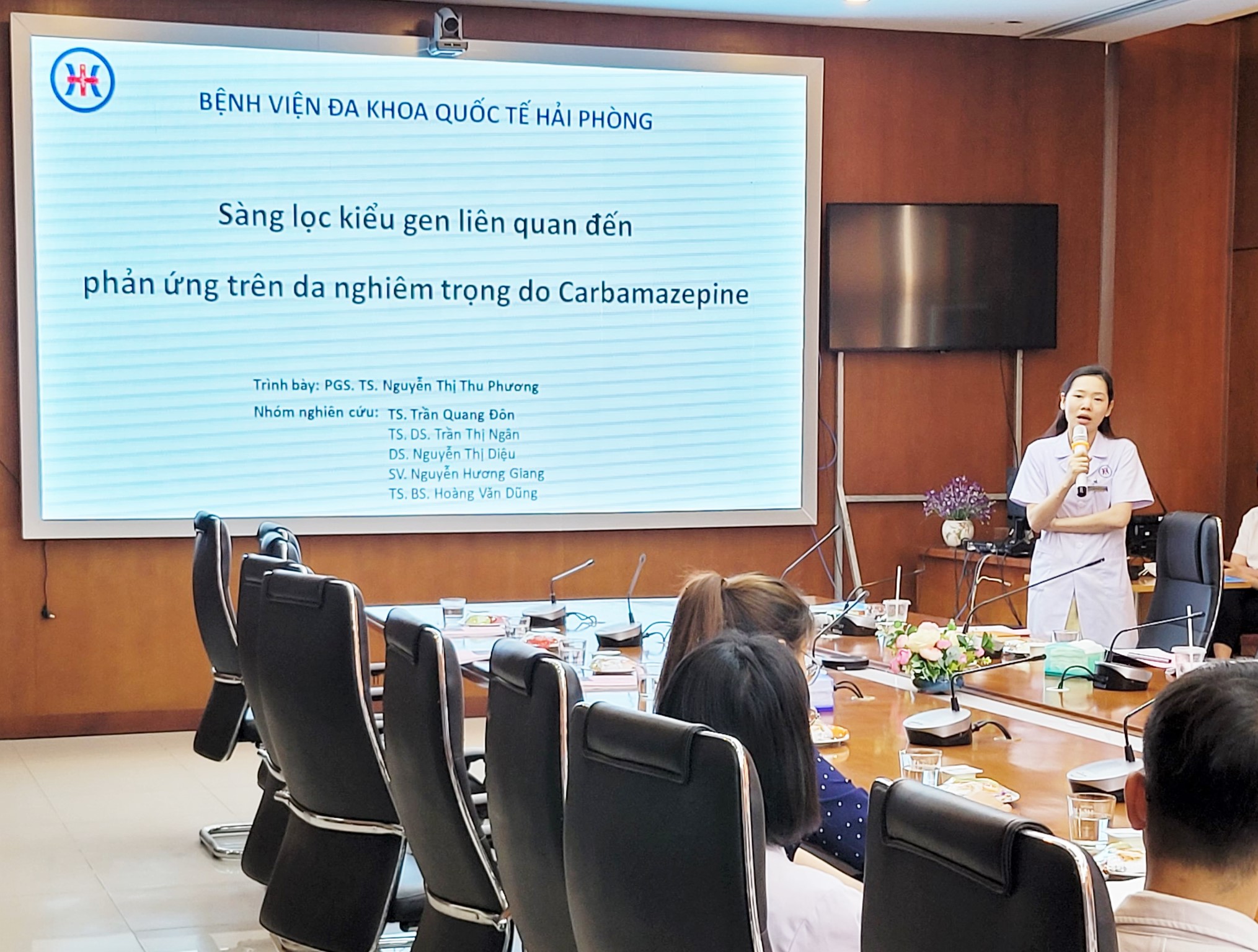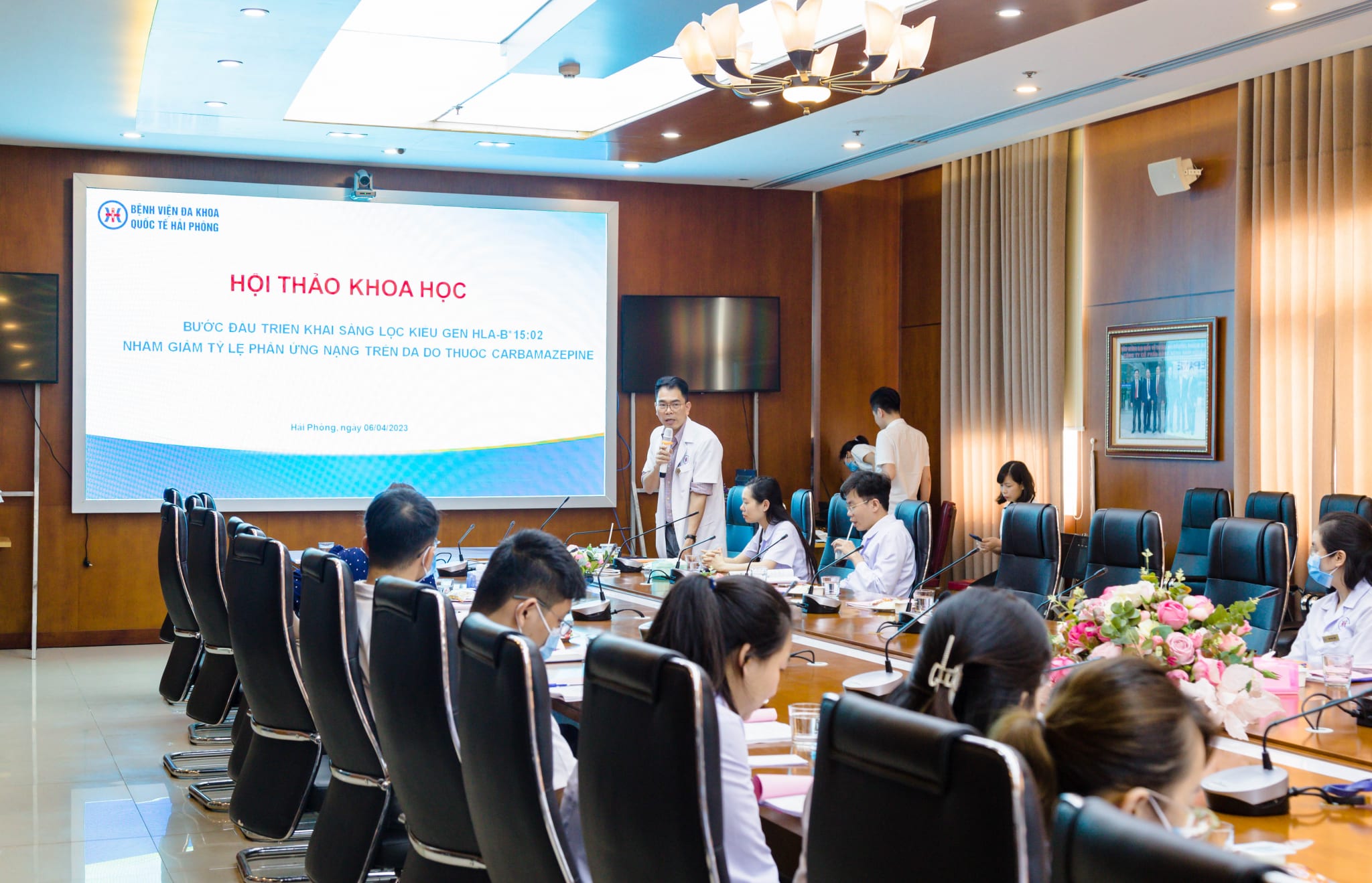 Phát biểu khai mạc hội thảo, TS.BS.Hoàng Văn Dũng – Giám đốc chuyên môn Bệnh viện đa khoa quốc tế Hải Phòng đã đánh giá cao sự hợp tác nghiên cứu giữa Bệnh viện đa khoa quốc tế Hải Phòng; Bệnh viện Tâm thần Hải Phòng và ý nghĩa của đề tài trong bước đầu triển khai sàng lọc cũng như ứng dụng trong hỗ trợ, giảm giảm tỷ lệ phản ứng nặng trên da do thuốc Carbamazepine cho bệnh nhân.