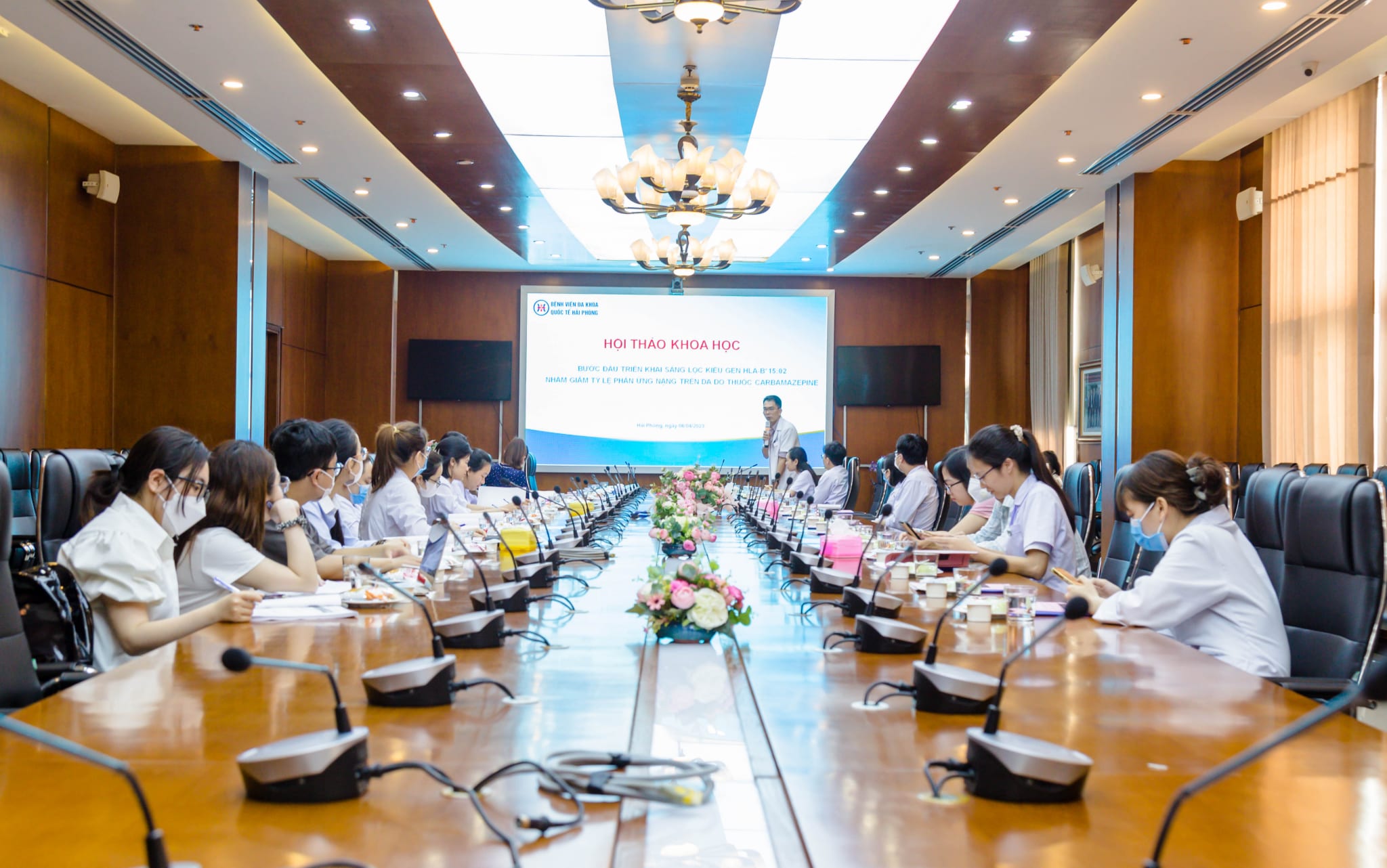Tại hội thảo, đã nghe báo cáo: Cải tiến quy trình Realtime-PCR Taqman probe bằng PNA clamping để phát hiện alen HLA-B*15:02 do TS. Trần Quang Đôn – Phó trưởng Khoa Xét nghiệm trình bày và Bước đầu triển khai sàng lọc kiểu gen HLA – B*15:02 trên nhóm bệnh nhân sử dụng Carbamazepine do PGS. TS. Nguyễn Thị Thu Phương – Trưởng Khoa Dược, Bệnh viện đa khoa quốc tế Hải Phòng trình bày. Cũng tại đây ghi nhận nhiều thảo luận, trao đổi ý nghĩa về kết quả bước đầu trong nghiên cứu sàng lọc kiểu gen HLA-B*15:02 bằng kỹ thuật sinh học phân tử hiện đại, qua đó ứng dụng giảm tỷ lệ phản ứng nặng trên da do thuốc Carbamazepine.