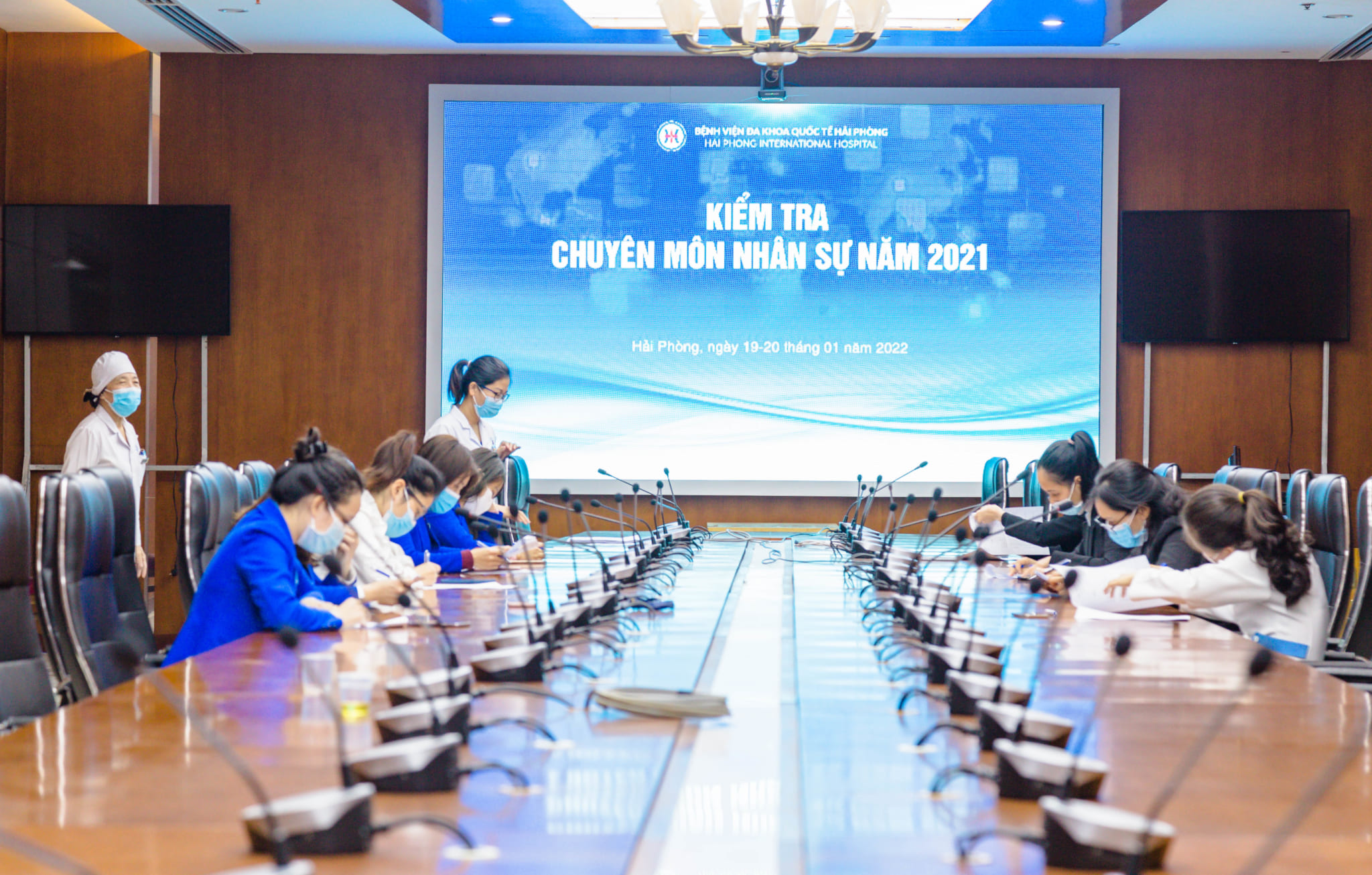 Trong 2 ngày 19 và 20/1 vừa qua, Bệnh viện đa khoa Quốc tế Hải Phòng đã tổ chức kiểm tra chuyên môn cho đội ngũ nhân sự bệnh viện nhằm đánh giá kiến thức và kỹ năng của nhân sự trong năm 2021, là cơ sở tham khảo để đánh giá chất lượng nhân sự và xây dựng kế hoạch đào tạo năm 2022.