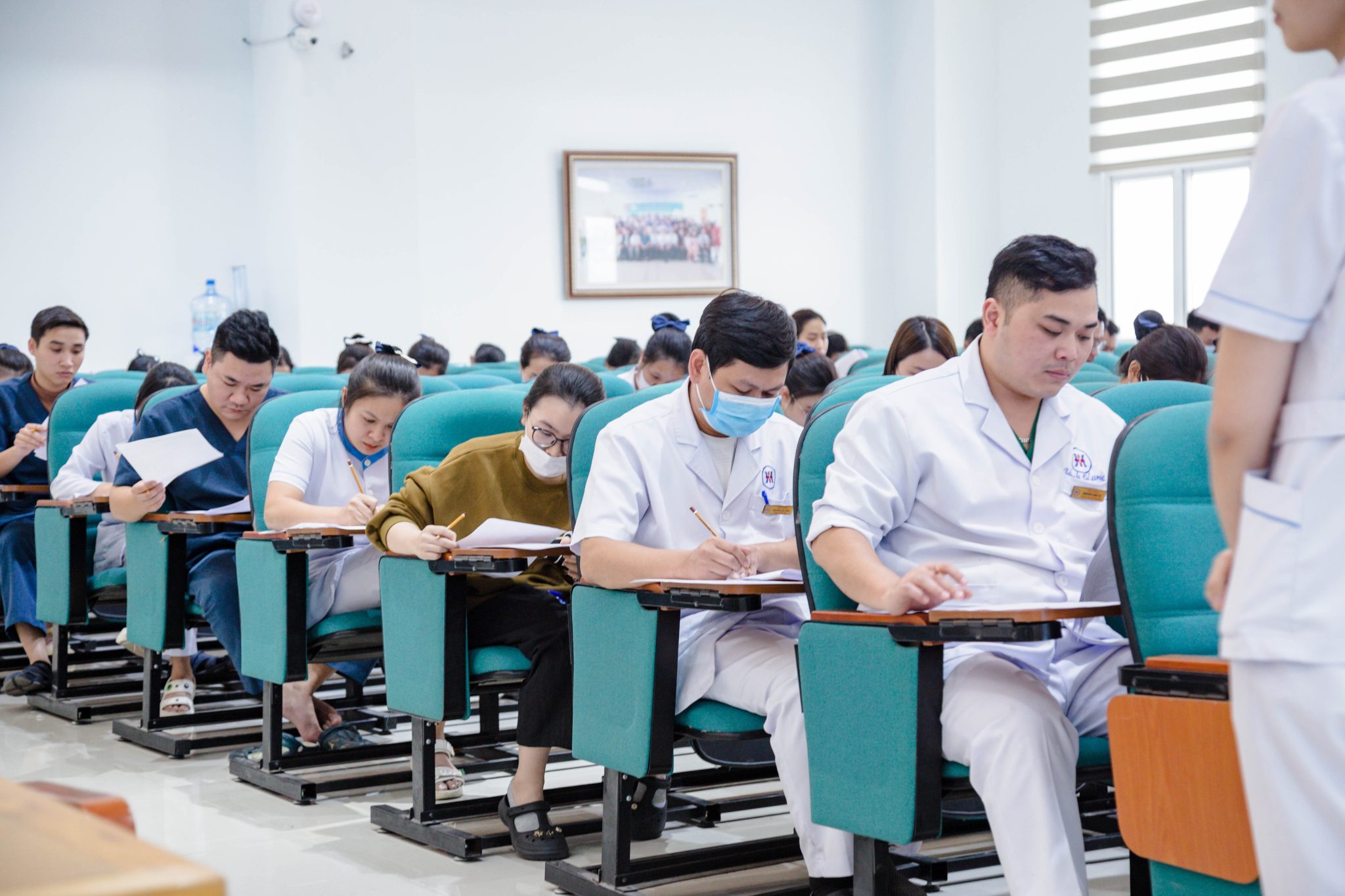 Tham dự chương trình có: ThS.BSNT. Nguyễn Thái Bình – Giám đốc chuyên môn hê Nội; BS. Phạm Thị Huệ – Trưởng Phòng Đào tạo – quản lý chất lượng; ThS. Phạm Thị Liễu – Trưởng Phòng Điều dưỡng; các thành viên trong Ban giám sát cùng 462 thí sinh.