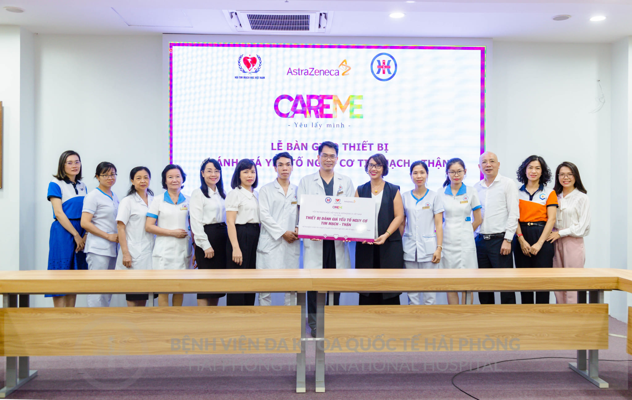 Những năm qua, Bệnh viện đa khoa quốc tế Hải Phòng luôn nhận được sự đồng hành, hỗ trợ và chung tay cùng Bệnh viện trong chăm sóc sức khỏe nhân dân, đặc biệt bệnh nhân Tim mạch – Thận – Chuyển hóa của Công ty AstrZeneca và Hội Tim mạch học Việt Nam. Chương trình “CAREME – Đánh giá yếu tố nguy cơ Tim mạch – Thận” do AstraZeneca phối hợp cùng Hội Tim mạch học Việt Nam lần này cũng tin tưởng và lựa chọn Bệnh viện đa khoa Quốc tế Hải Phòng là đơn vị duy nhất tại Hải Phòng được trao tặng thiết bị này, phục vụ miễn phí cho người dân tới thăm, khám sức khỏe tại Bệnh viện, nhằm giúp người bệnh đánh giá được yếu tố nguy cơ tim mạch của mình; đồng thời hỗ trợ thêm cho các bác sĩ trong lựa chọn các liệu pháp điều trị cho bệnh nhân, từ đó giúp quản lý và phòng ngừa biến chứng tim mạch tốt hơn.