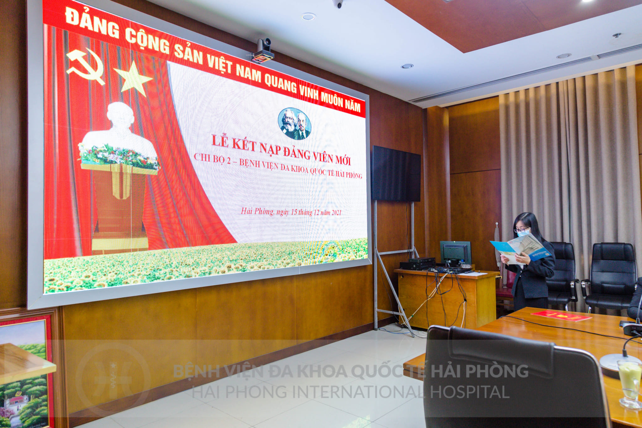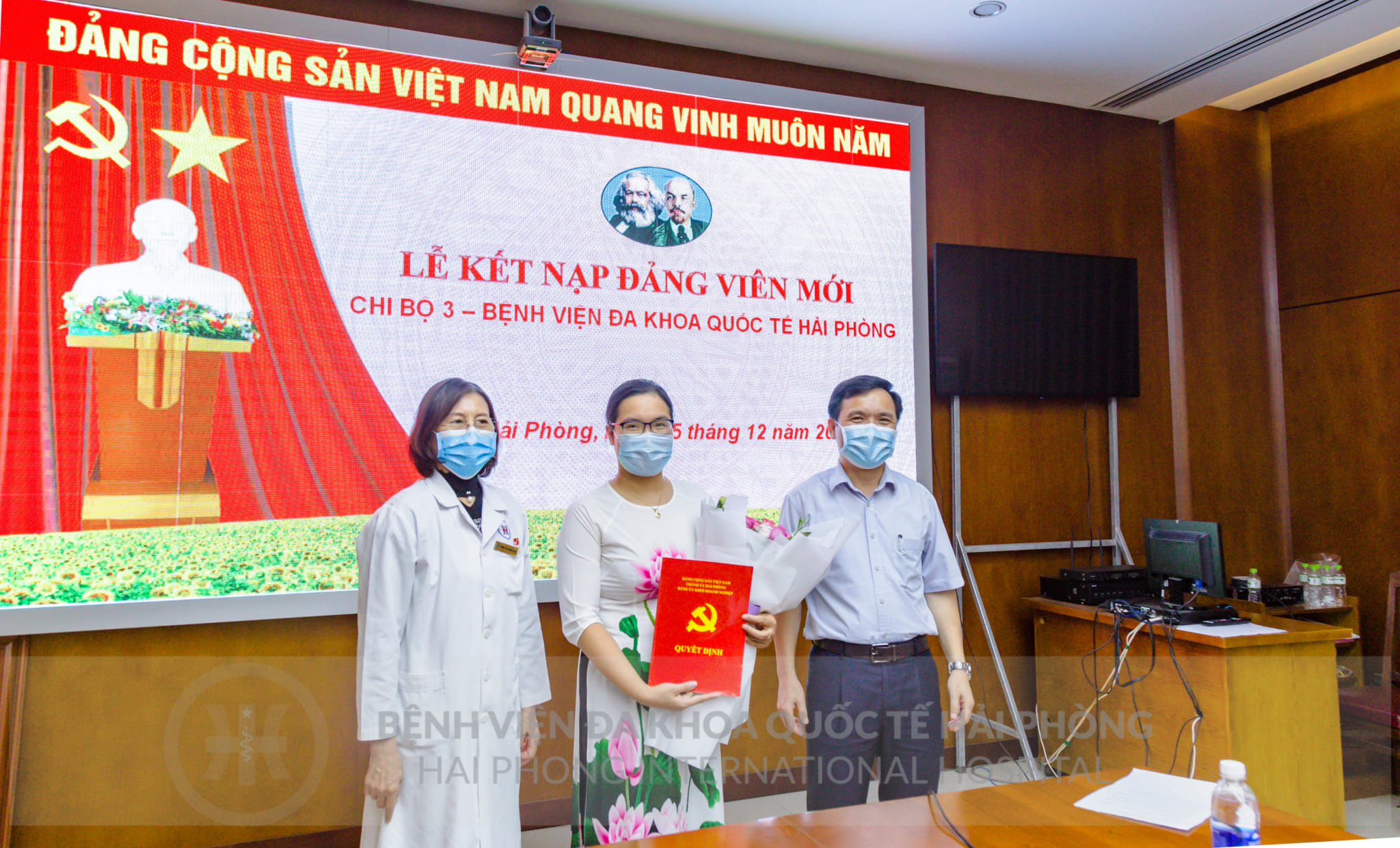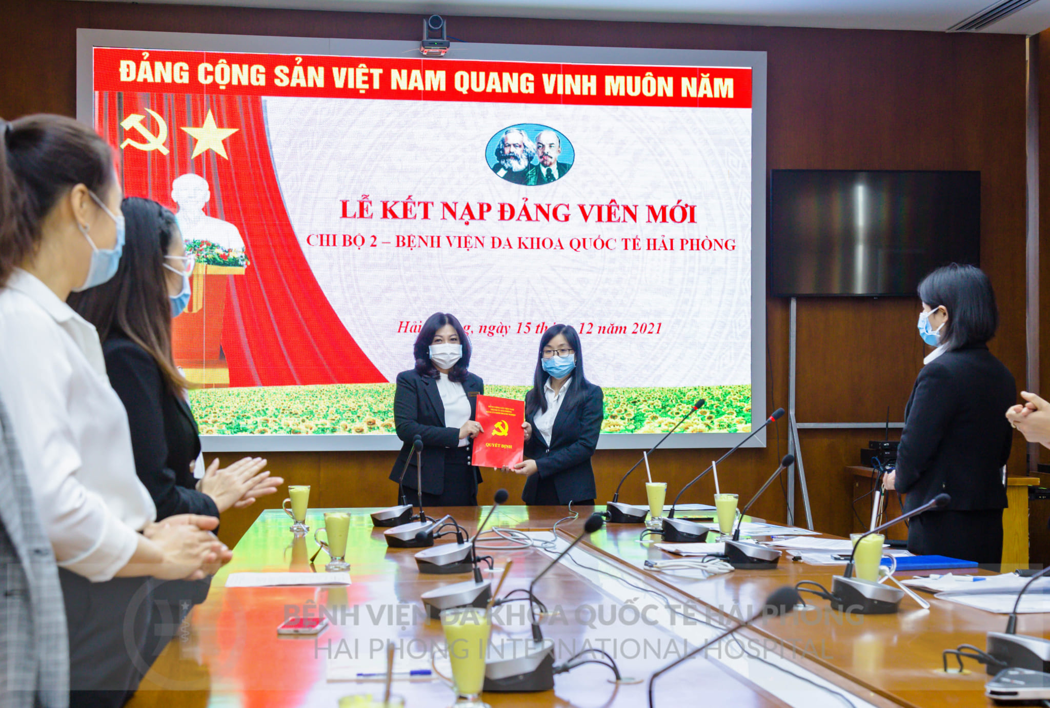Thực hiện kế hoạch công tác năm 2021, chiều ngày 15/12, Chi bộ 2 và Chi bộ 3, Bệnh viện đa khoa Quốc tế Hải Phòng đã triển khai thực hiện công tác phát triển đảng viên, tổ chức kết nạp cho quần chúng ưu tú Lê Thị Anh Tuyết – Nhân viên Phòng Tài chính kế toán và BS. Phạm Thị Quỳnh Nga – Phó khoa Hồi sức cấp cứu.