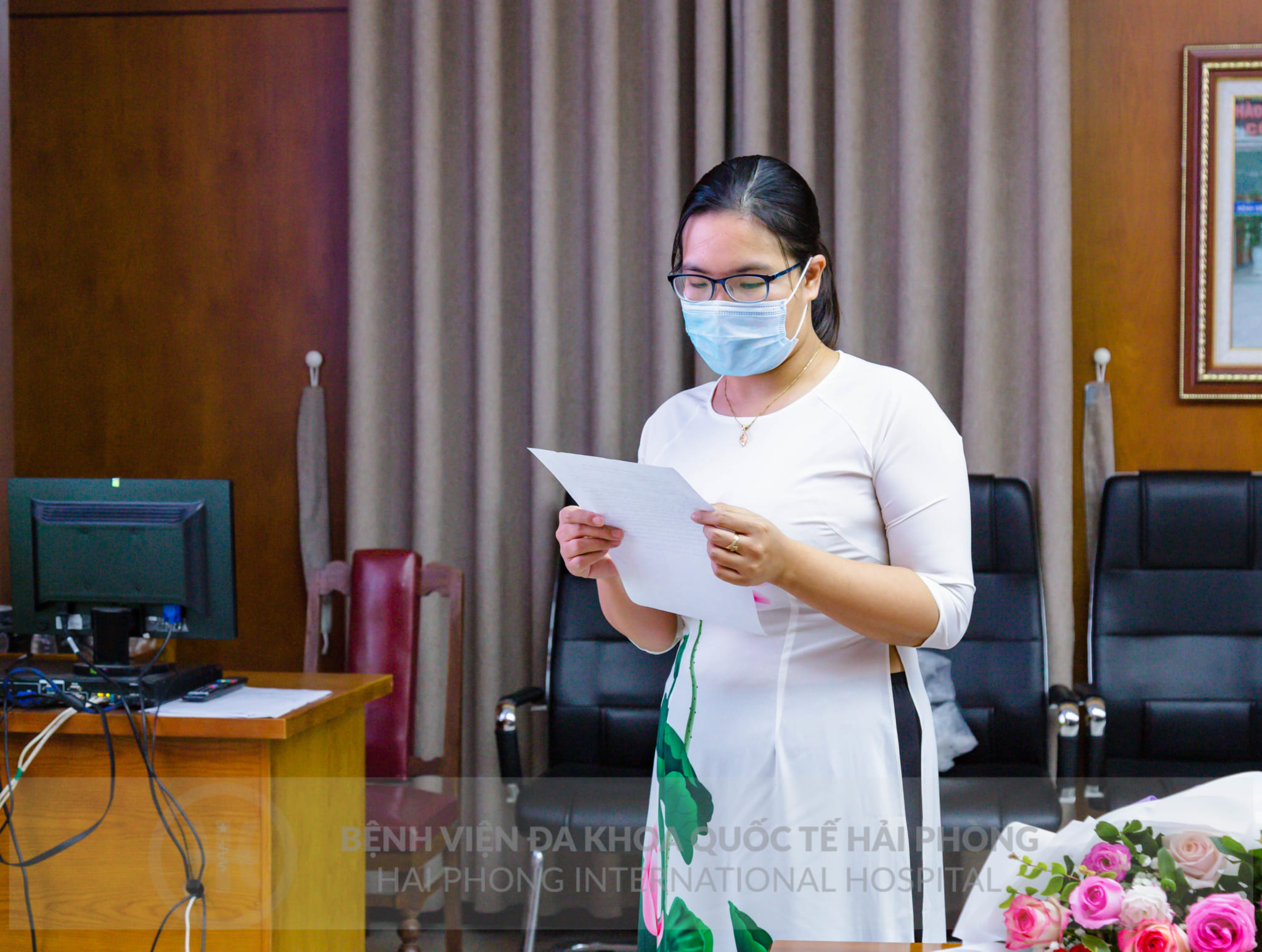 Phát biểu chúc mừng hai Đảng viên mới, PGS.TS Nguyễn Thanh Hồi – Bí thư Đảng ủy, Giám đốc điều hành Bệnh viện đa khoa Quốc tế Hải Phòng đã biểu dương sự quan tâm chú trọng của các Chi bộ trong công tác phát triển đảng đồng thời giao nhiệm vụ hai đảng viên cần cố gắng phấn đấu rèn luyện trong 12 tháng thử thách. Đặc biệt, các đồng chí cần thể rõ nét vai trò, trách nhiệm của người đảng viên, kiên định, gương mẫu, tiên phong, luôn đi đầu trong các hoạt động và hoàn thành xuất sắc nhiệm vụ được giao, đóng góp sức mình trong thực hiện thành công nhiệm vụ chính trị của Chi bộ, xây dựng các Chi bộ, Đảng bộ Bệnh viện ngày càng vững mạnh.