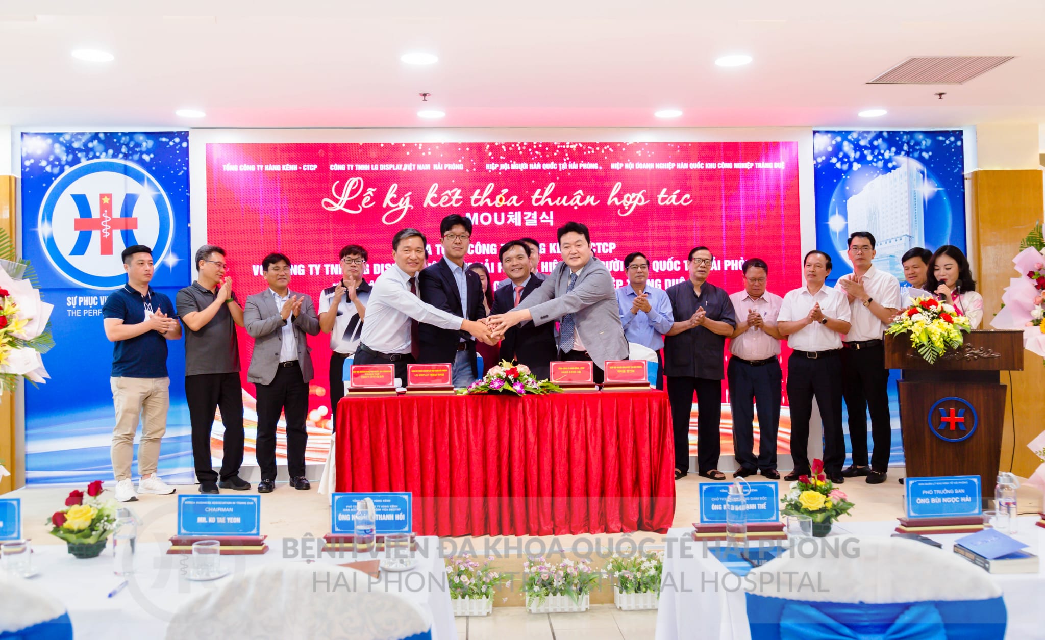 Chiều ngày 20/7 tại Bệnh viện đa khoa Quốc tế Hải Phòng đã diễn ra Lễ kí kết thỏa thuận hợp tác giữa Tổng Công ty Hàng Kênh với Công ty TNHH LG Display Việt Nam Hải Phòng, Hiệp hội người Hàn Quốc tại Hải Phòng, Hiệp hội doanh nghiệp Hàn Quốc Khu Công nghiệp Tràng Duệ. Tham dự chương trình có: ông Bùi Ngọc Hải – Phó trưởng ban Ban Quản lý Khu kinh tế thành phố; ông Phan Huy Thục, Phó Giám đốc Sở Y tế thành phố cùng đại diện lãnh đạo: Công ty TNHH LGD; Hiệp hội người Hàn Quốc tại Hải Phòng, Hiệp hội doanh nghiệp Hàn Quốc Khu Công nghiệp Tràng Duệ; Tổng Công ty Hàng Kênh và hệ thống Bệnh viện, Phòng khám thuộc Tổng Công ty.