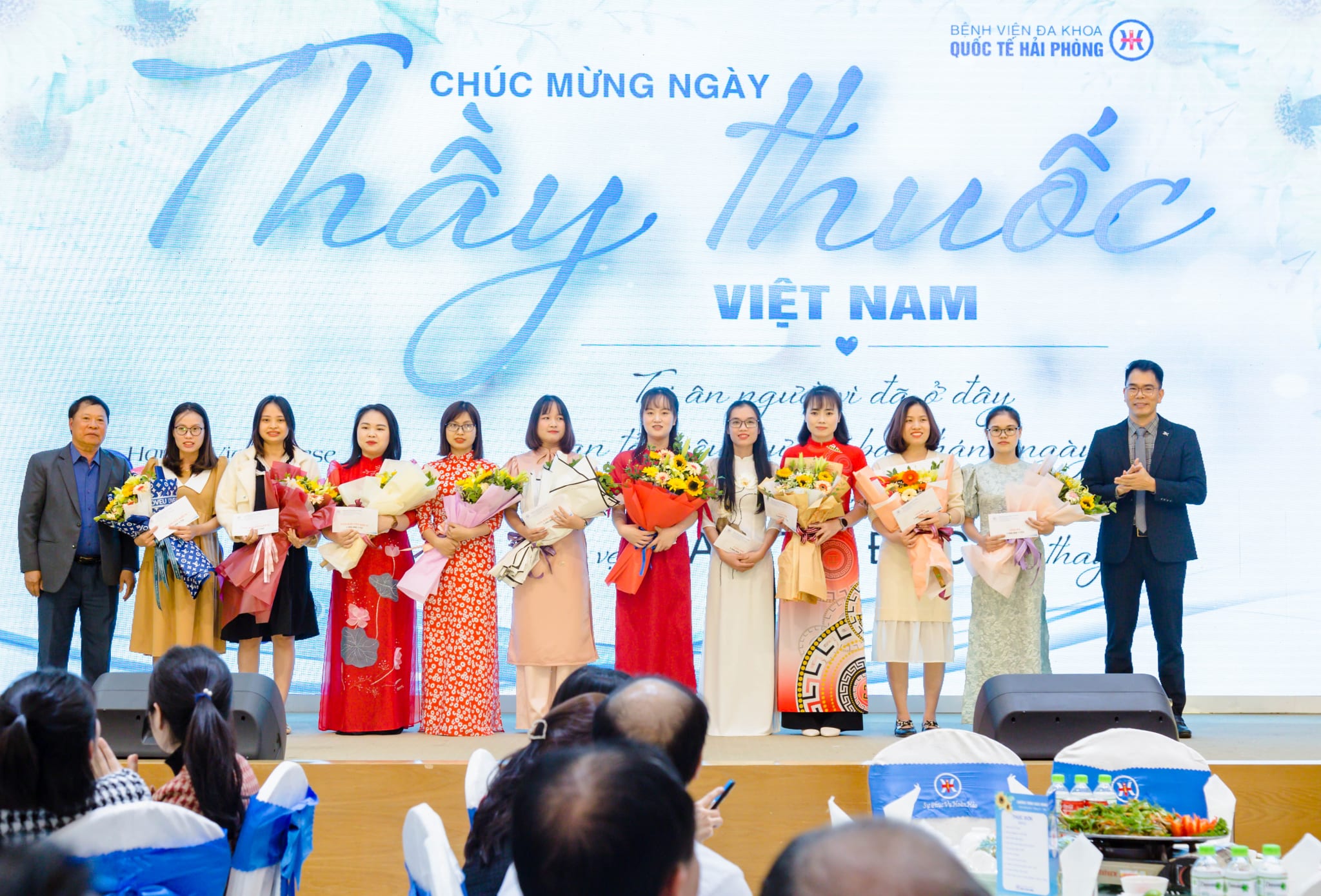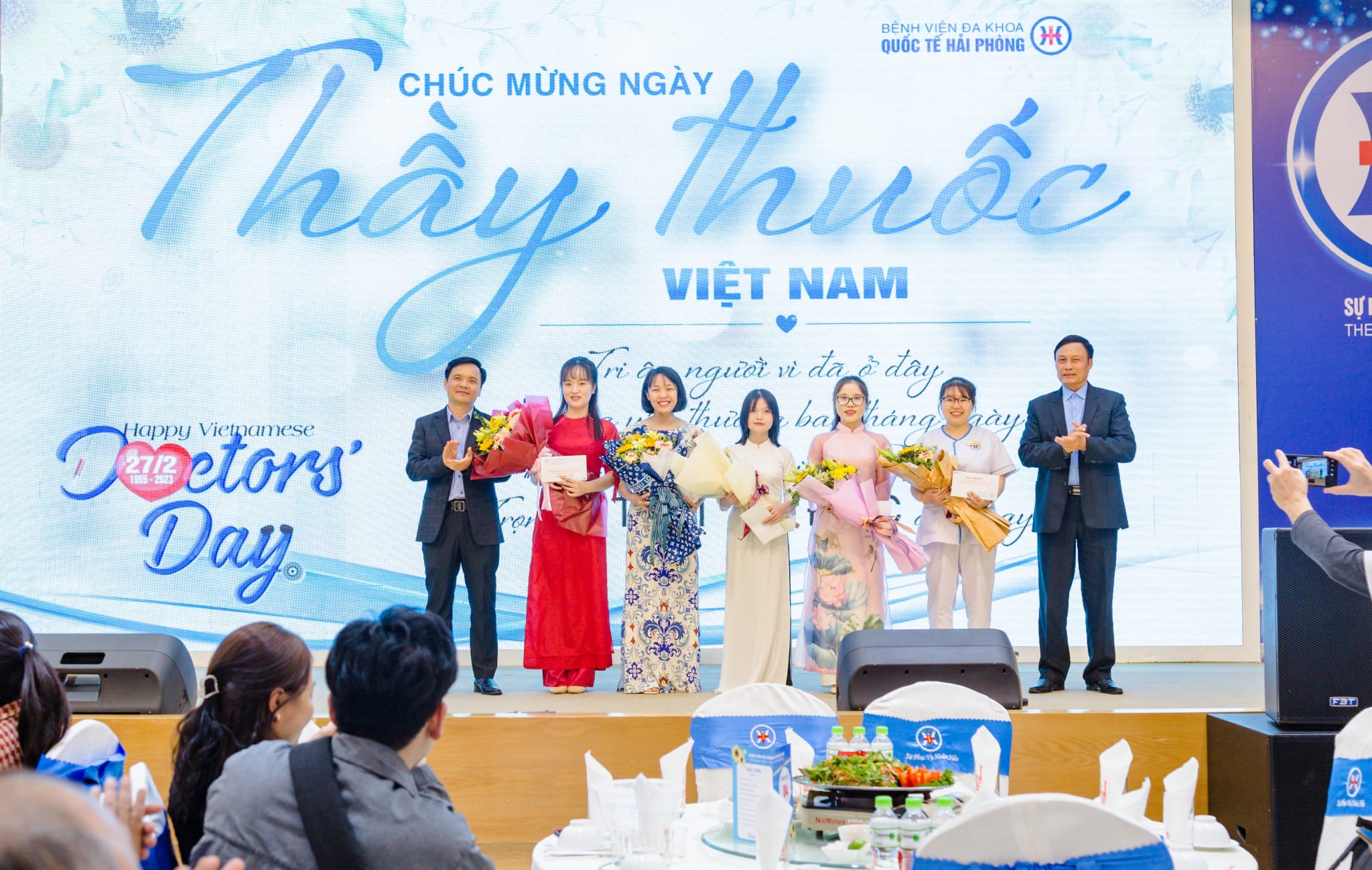 Cũng tại buổi lễ, bệnh viện đã chúc mừng các nhân sự đã đạt kết quả cao trong đợt kiểm tra chuyên môn cuối năm 2022 và điều dưỡng đạt giải tại Hội thi rung chuông vàng vừa qua. Lễ kỷ niệm 68 năm Ngày thầy Thuốc Việt Nam đã trở thành dịp để Bệnh viện đa khoa quốc tế Hải Phòng ôn lại truyền thống của ngành Y tế đồng thời tri ân tới những người thầy thuốc – những “chiến sĩ áo trắng”, qua đó đội ngũ thầy thuốc phát huy truyền thống, không ngừng phấn đấu và hoàn thành xuất sắc nhiệm vụ trên mặt trận chăm sóc và bảo vệ sức khỏe nhân dân.