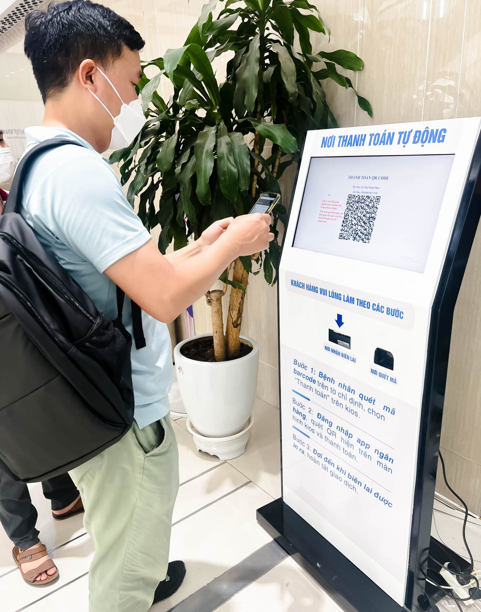 Bước 2: Đăng nhập app ngân hàng, quét QR hiện trên màn hình kios và thanh toán;