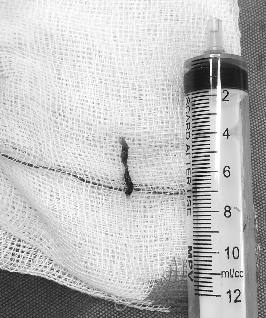 Hình ảnh huyết khối được hút ra trong quá trình can thiệp