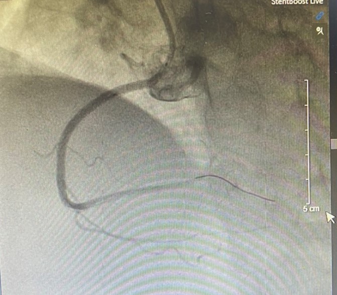 Kết quả chụp mạch vành phát hiện tổn thương nặng 3 thân mạch vành: Tắc hoàn toàn mạch vành phải, hẹp khít liên thất trước và hẹp 80-90% động mạch mũ trên bệnh nhân. Nhận định tổn thương do động mạch vành phải bị tắc hoàn toàn, kíp can thiệp Khoa Tim mạch – Đột quỵ đã nhanh chóng tiến hành tái thông mạch vành phải. Ngay sau khi can thiệp thành công, ghi nhận dòng chảy tốt, bệnh nhân đã ổn định, hết đau ngực. Nhờ được phát hiện can thiệp cấp cứu kịp thời, sử dụng kĩ thuật tiên tiến, đặt stent động mạch vành đã cứu sống bệnh nhân.