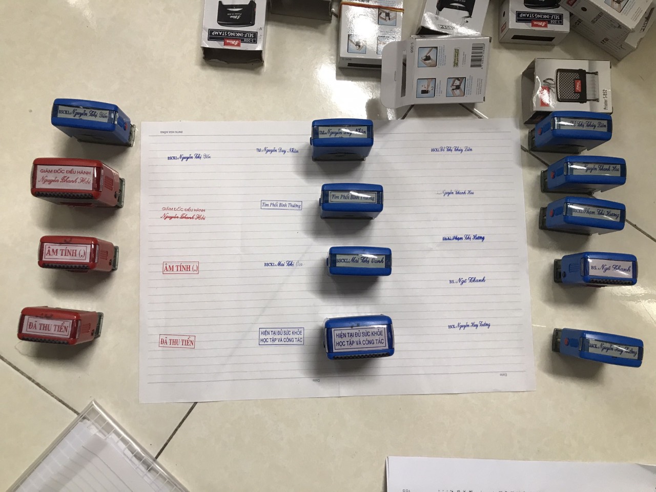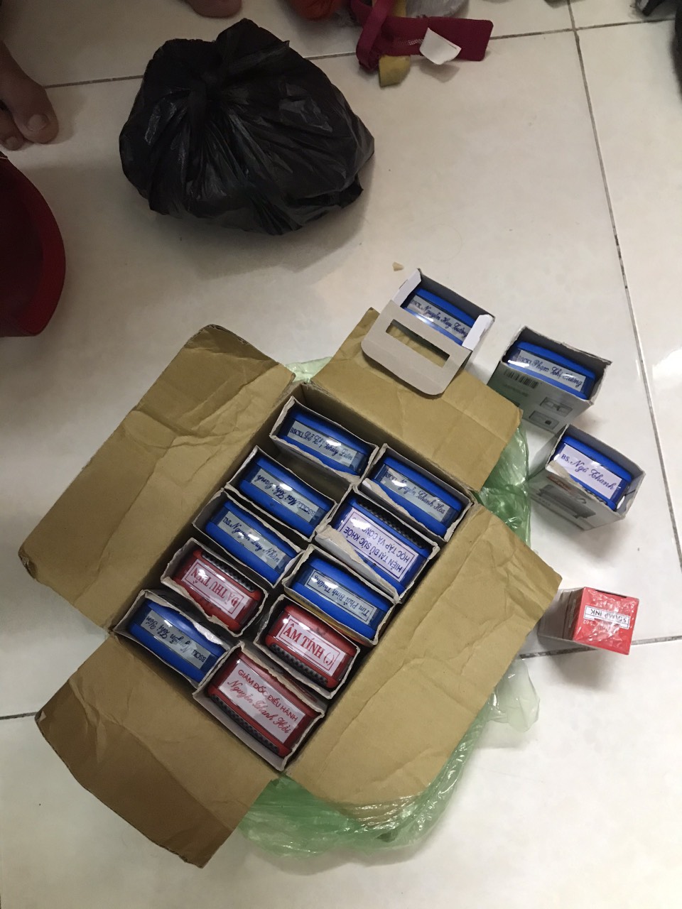 Tiến hành khám xét, lực lượng phá án thu giữ 15 con dấu giả, 390 tờ giấy khám sức khỏe các loại, 1 máy in màu, 3 máy tính xách tay, 4 điện thoại di động cùng các dụng cụ làm giả giấy tờ như bút dạ, bút bi, keo dán, 83 tờ giấy bóng kính đục lỗ hồ sơ, 1 xe ôtô, 1 xe môtô và hơn 16 triệu đồng…