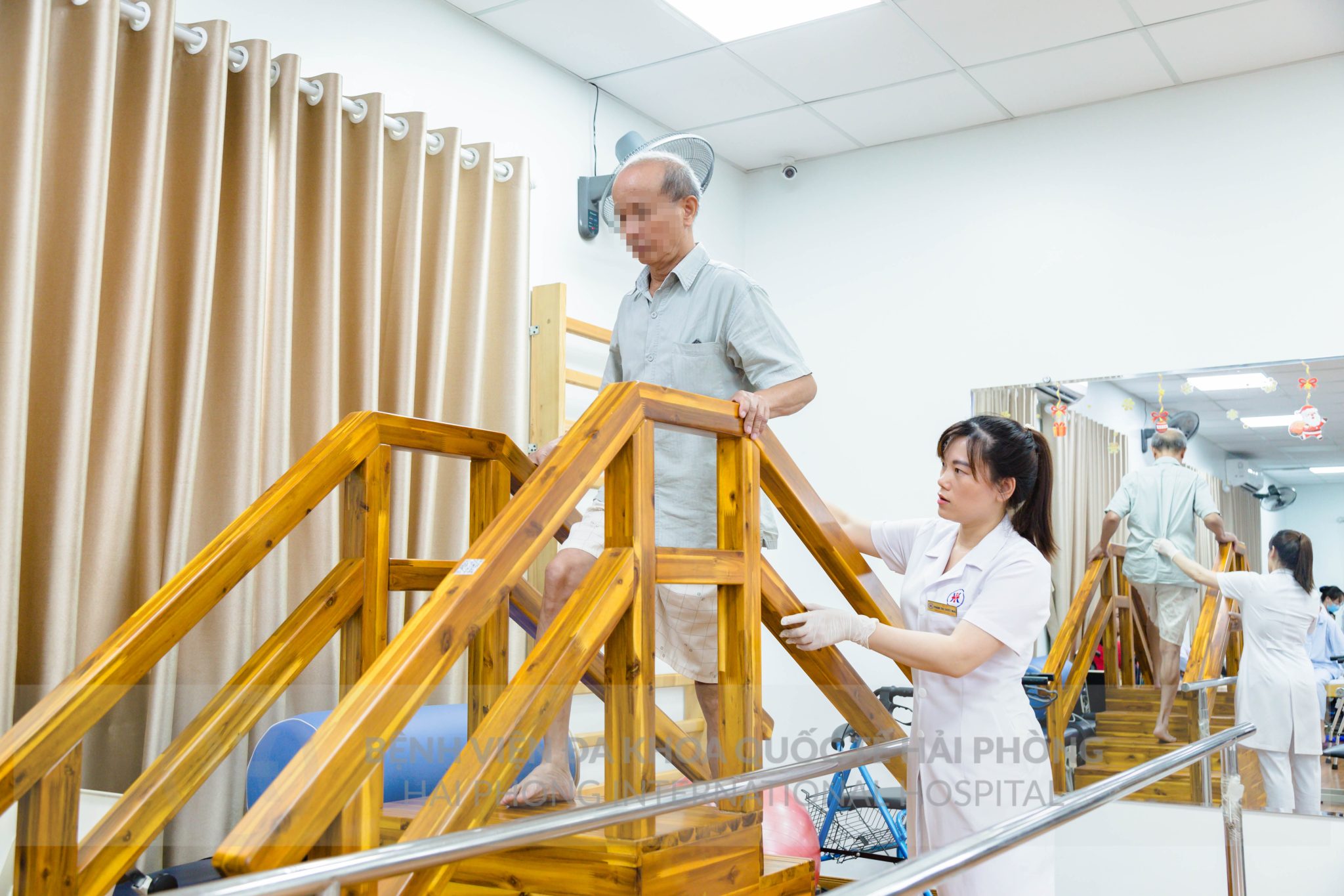 Bệnh nhân Đ.V.M, 67 tuổi, ở Cầu Đất, Ngô Quyền, Hải Phòng bị di chứng liệt nửa người phải sau tai biến mạch máu não. Ngày vào Bệnh viện đa khoa Quốc tế Hải Phòng, người bệnh đi không vững, phải dùng gậy; chức năng bàn tay rất kém, tay không tự nâng lên hạ xuống được.