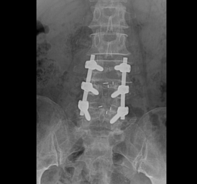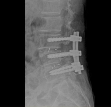 Qua thăm khám và các chỉ định cận lâm sàng cần thiết, bác sĩ Khoa Ngoại Chấn thương chỉnh hình chẩn đoán người bệnh bị thoát vị đĩa đệm L34, L45 gây hẹp nặng ống sống thắt lưng và chèn ép rễ thần kinh ngang mức. Bệnh nhân được chỉ định phẫu thuật cố định cột sống, giải ép thần kinh và hàn xương liên thân đốt L34, L45.