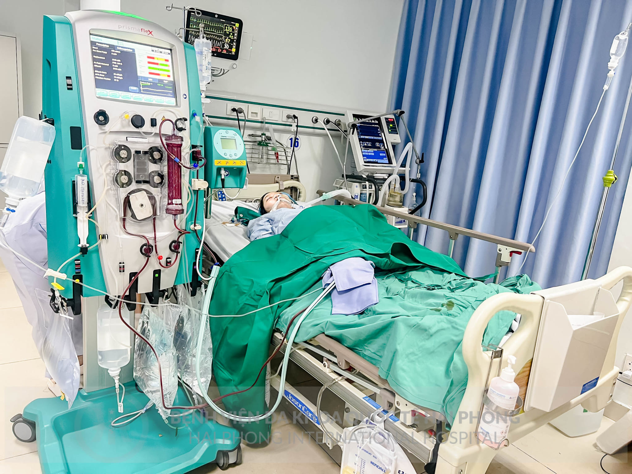 Đánh giá tình trạng bệnh nhân nặng do bị viêm tụy cấp, Bệnh viện lập tức mời bác sĩ Bệnh viện Quốc tế Sản Nhi Hải Phòng hội chẩn và tiến hành mổ lấy thai cấp cứu. Bé trai nặng 3kg chào đời, toàn trạng ổn định và được chăm sóc sơ sinh, theo dõi tại Bệnh viện Quốc tế Sản Nhi Hải Phòng. Sản phụ sau mổ bụng chướng nhiều, tiểu ít, tình trạng toan hóa máu. Với chẩn đoán: Viêm tụy cấp có tăng triglycerid nặng, bệnh nhân được chuyển khoa Hồi sức cấp cứu của Bệnh viện tiếp tục điều trị tích cực: Hỗ trợ hô hấp bằng thở máy qua nội khí quản, liệu pháp Insulin điều trị giảm Triglycerid, giảm đau, truyền dịch, kháng sinh kết hợp Lọc máu liên tục cấp cứu tại giường, hồi sức tích cực, chọc dẫn lưu các ổ dịch trong khoang bụng. Sau những nỗ lực của đội ngũ y bác sĩ, tình trạng bệnh nhân dần ổn định, không còn đau bụng, chỉ số Triglyceride giảm xuống mức bình thường, hết tình trạng viêm tụy.