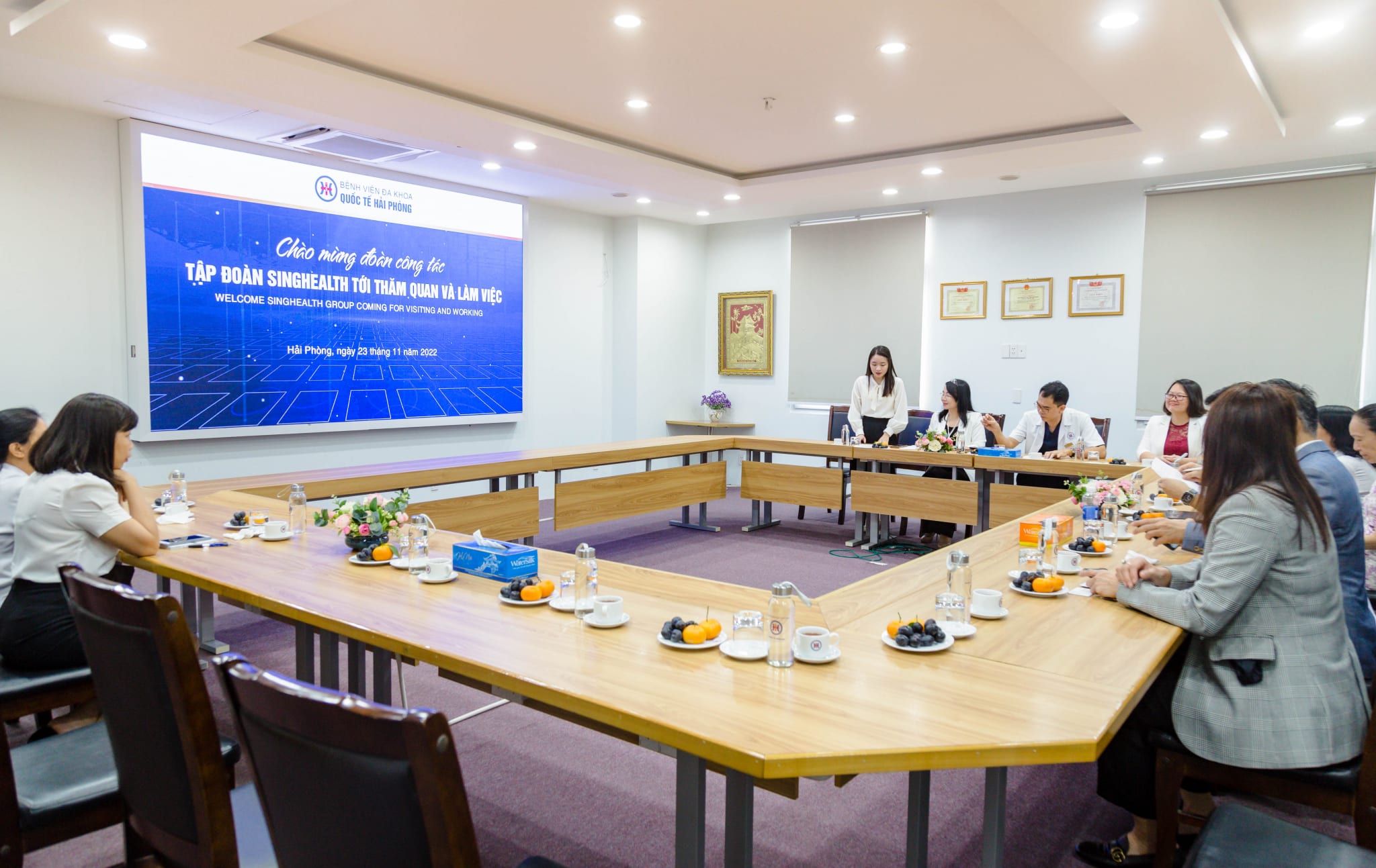 Tại buổi làm việc, hai đơn vị đã cùng trao đổi, xác định các chương trình, nội dung hợp tác cụ thể trong lĩnh vực đào tạo nâng cao trình độ chuyên môn, nghiệp vụ cho đội ngũ chuyên gia, y bác sĩ; hỗ trợ bệnh nhân được tiếp cận, sử dụng dịch vụ y tế chất lượng cao thông qua việc kết nối hội chẩn, chuyên gia giữa Bệnh viện đa khoa quốc tế Hải Phòng với SingHealth; hỗ trợ người bệnh được thăm khám, điều trị tại Singapore… Cũng trong khuôn khổ chương trình, Đoàn công tác đã thăm quan một số Khoa, Phòng của Bệnh viện đa khoa quốc tế Hải Phòng như: Khoa Gây mê hồi sức, Phòng Truyền thông và Chăm sóc khách hàng, Khoa Hồi sức cấp cứu…