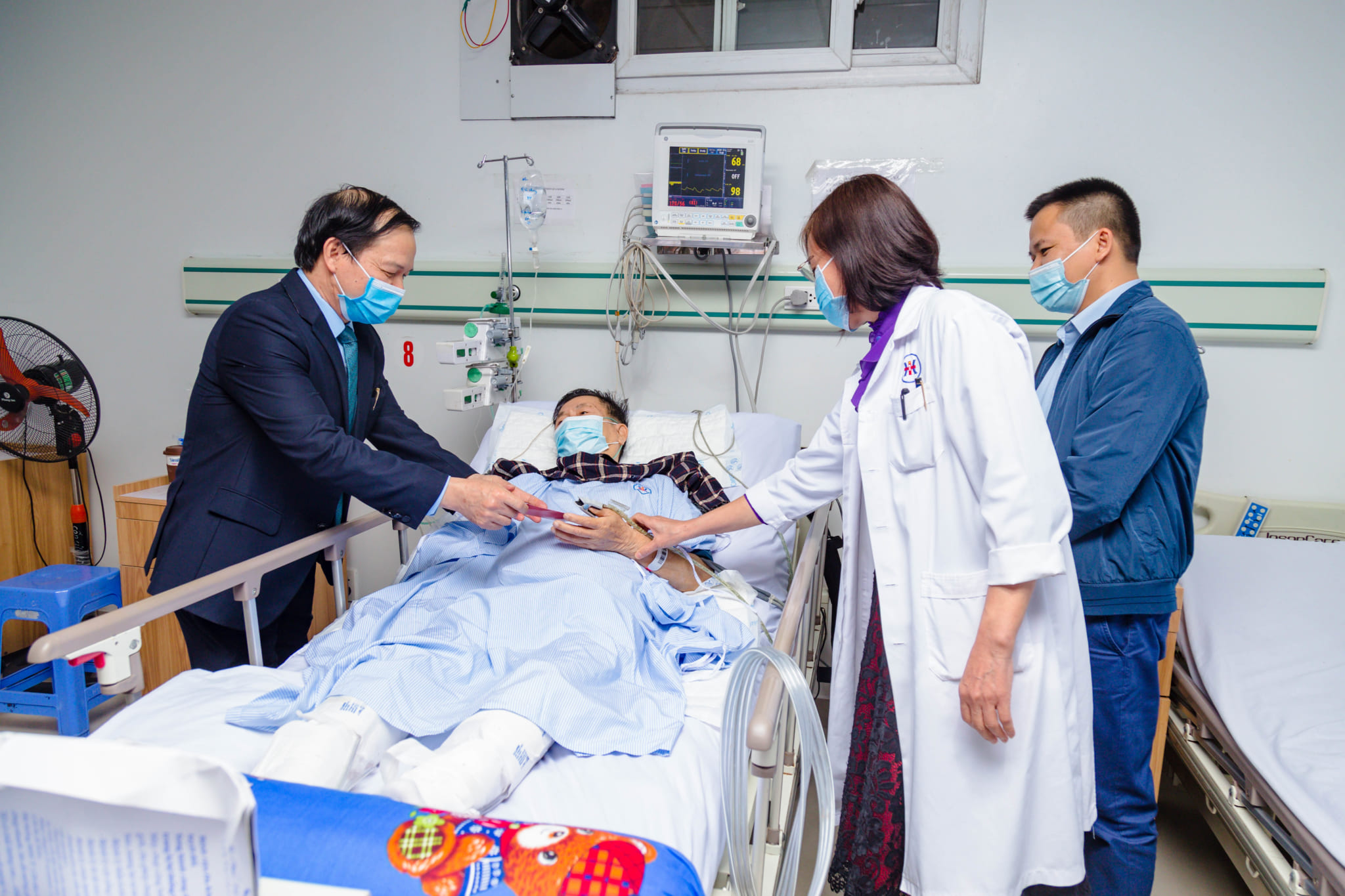 Trước thời khắc chào đón năm mới, đại diện lãnh đạo Bệnh viện – ông Lương Văn Tích – Giám đốc tài chính đã gửi lời chúc mừng năm mới đồng thời trao tận tay mọi người món quà đầu xuân, mong muốn bệnh nhân yên tâm điều trị để sớm bình phục, đội ngũ y bác sĩ tiếp tục chú trọng công tác chuyên môn, đảm bảo phục vụ người bệnh một cách an toàn nhất.