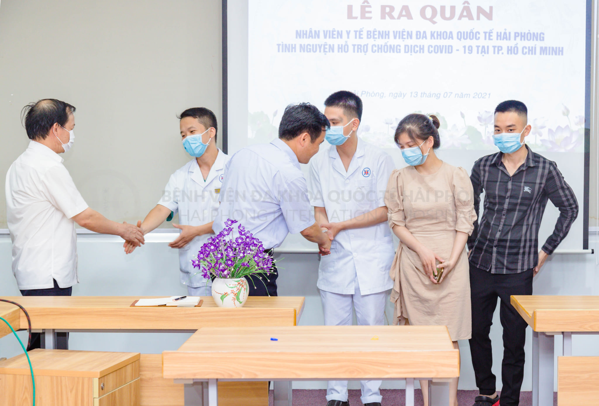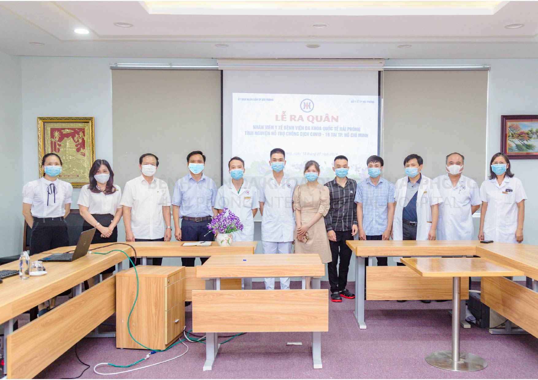 Chỉ ngay sau ít phút “nhận lệnh”, Bệnh viện đa khoa Quốc tế Hải Phòng đã phát động và nhận được sự hưởng ứng nhiệt tình của các y bác sĩ tình nguyện lên đường. Sáng ngày 13/7, Bệnh viện đã tổ chức Lễ ra quân nhân viên y tế Bệnh viện đa khoa Quốc tế Hải Phòng tham gia hỗ trợ chống dịch Covid-19 tại TP. Hồ Chí Minh.