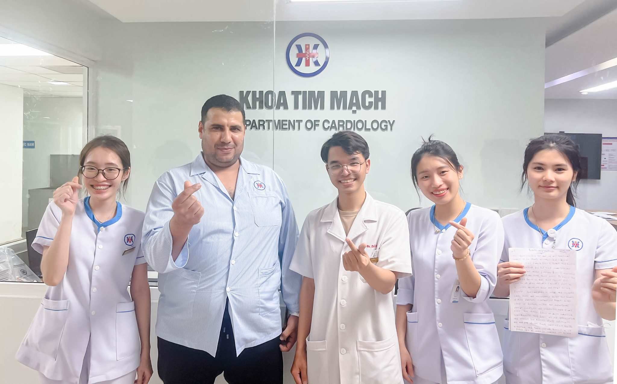 “ Tôi xin cảm ơn lãnh đạo Bệnh viện đã quản lí tốt tổ chức tuyệt vời này. Mọi người ở đây đều tận tâm làm việc, nỗ lực hết mình để nâng cao trình độ chuyên môn để họ có thể chăm sóc cho tất cả bệnh nhân của mình. Tôi luôn cảm thấy như tôi đang ở nhà và bên cạnh gia đình mình, mọi người đều mỉm cười và gửi sự hi vọng, yên tâm, cả trái tim của họ cho bệnh nhân. Từ trái tim tôi, tôi cảm ơn tất cả nhân viên của Khoa Tim mạch… Tình trạng của tôi hoàn toàn thay đổi so với lúc đầu, hành trình điều trị đã có được sức khỏe tinh thần tốt nhất. Từ nay trở đi, tôi có quê hương thứ hai – Việt Nam, bên cạnh đất nước Ai Cập thân yêu của tôi. Cảm ơn bạn rất nhiều về tất cả!