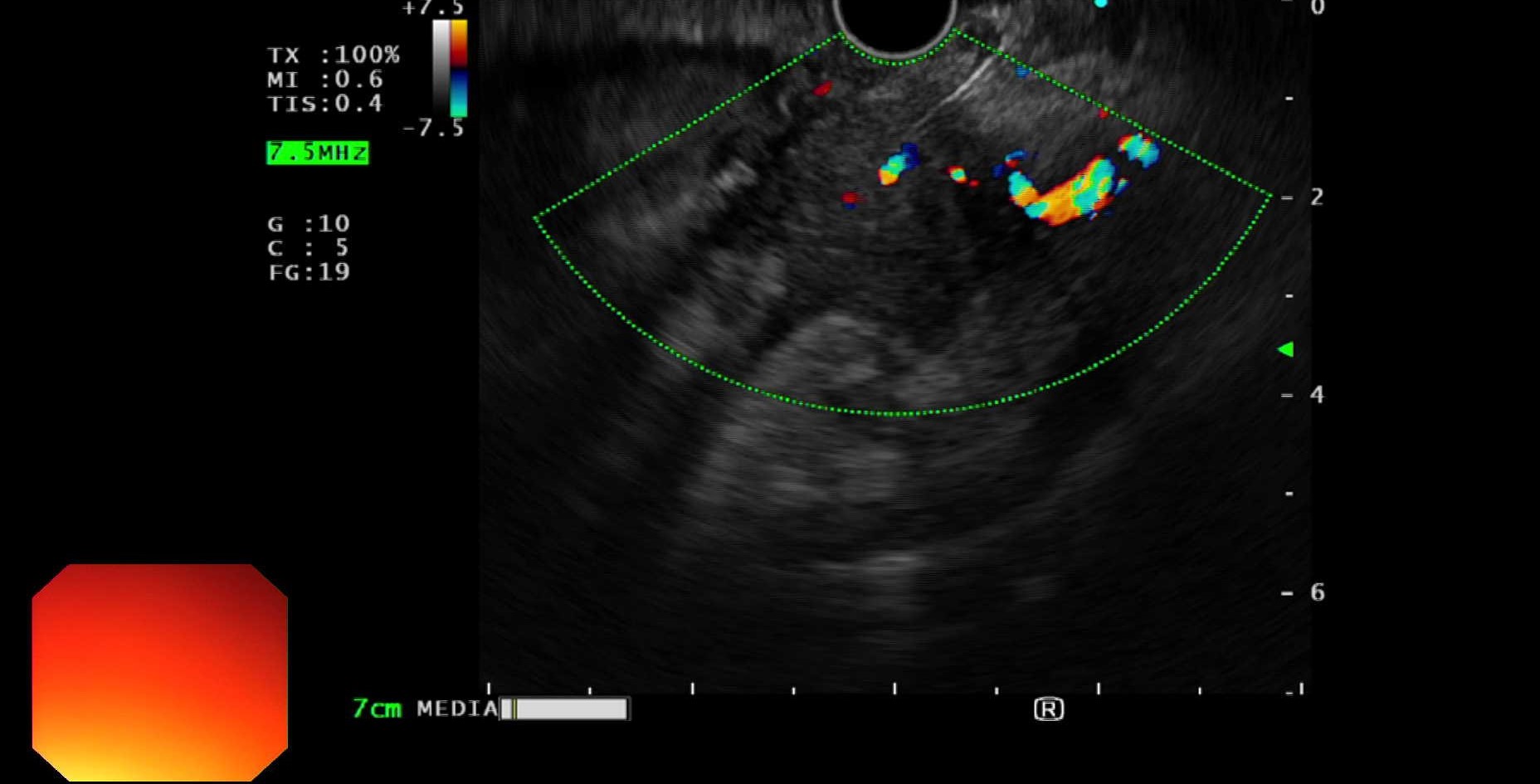 Nội soi siêu âm được đánh giá là một cuộc cách mạng trong lĩnh vực nội soi, đồng thời là phương tiện hỗ trợ đắc lực trong việc chẩn đoán và điều trị các bệnh lý về tiêu hóa. Với hệ thống nội soi thế hệ mới, tân tiến nhất hiện nay (bao gồm hệ thống nguồn nội soi CV190 kết hợp hệ thống nguồn siêu âm EU-ME2 của hãng Olympus), Khoa Tiêu hóa – Nội soi, Bệnh viện đa khoa Quốc tế Hải Phòng đã triển khai kỹ thuật chọc hút tế bào bằng kim nhỏ dưới hướng dẫn của nội soi siêu âm (Endoscopic ultrasound-guided fine needle aspiration: EUS-FNA) giúp phát hiện sớm, đánh giá chính xác tính chất và giai đoạn của các khối u tụy, mang lại cơ hội điều trị tốt nhất cho người bệnh. Đặc biệt, Bệnh viện đa khoa Quốc tế Hải Phòng cũng là cơ sở y tế đầu tiên và duy nhất tại Hải Phòng triển khai kỹ thuật này.